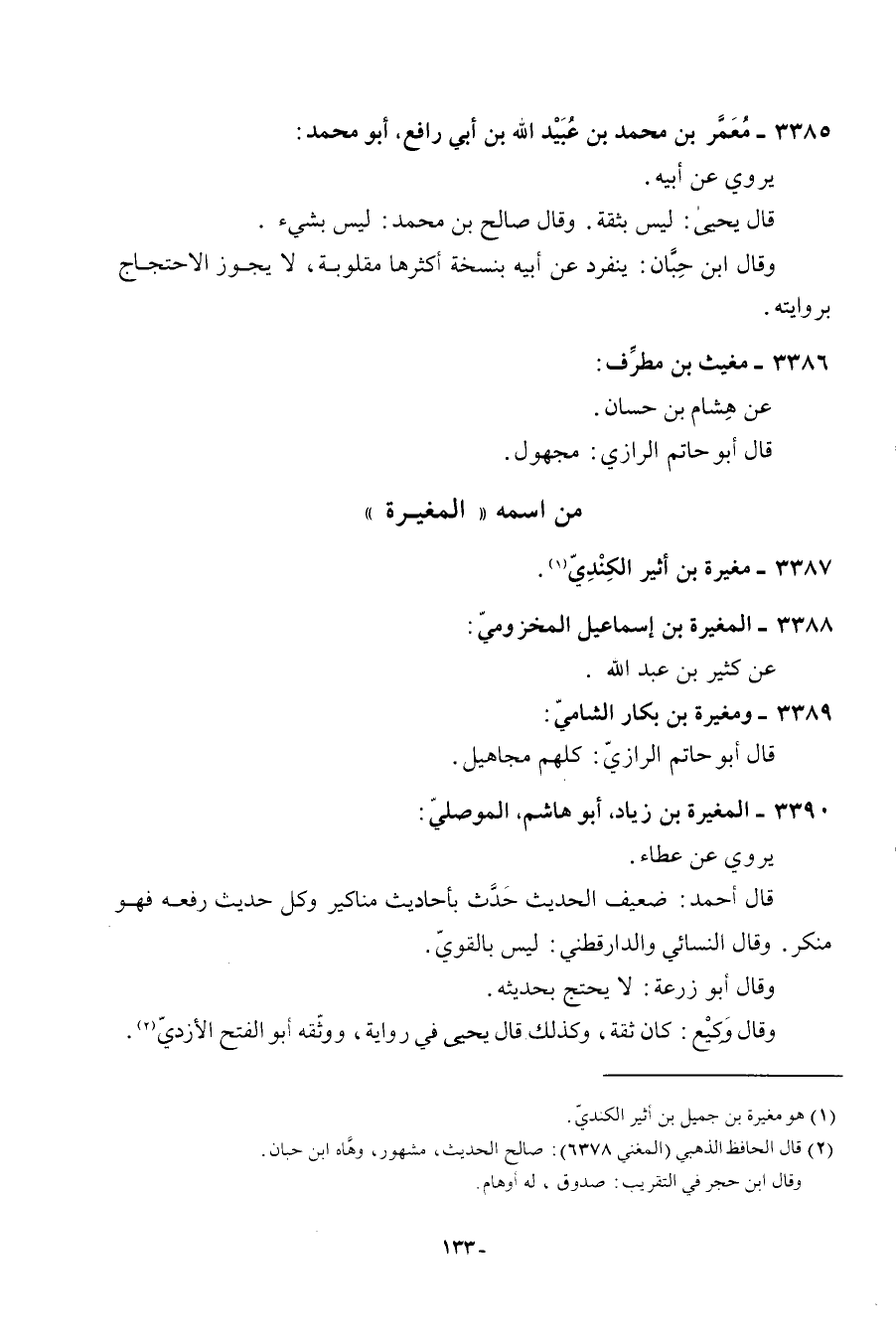 3389 - ومغيرة بن بكار الشَّامي قَالَ أَبُو حَاتِم الرَّازِيّ كلهم مَجَاهِيل