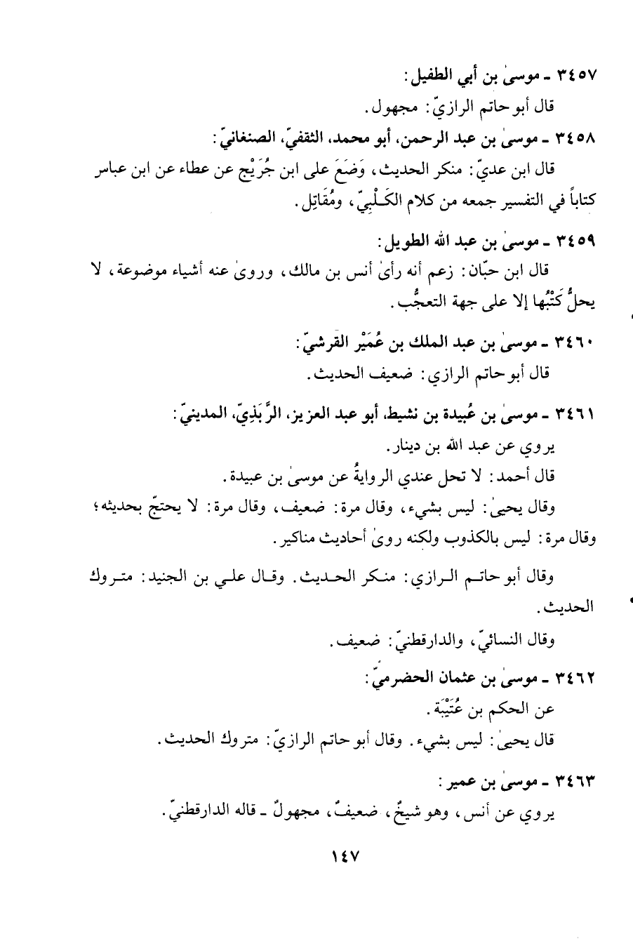 3457 - مُوسَى بن أبي الطُّفَيْل قَالَ أَبُو حَاتِم الرَّازِيّ مَجْهُول