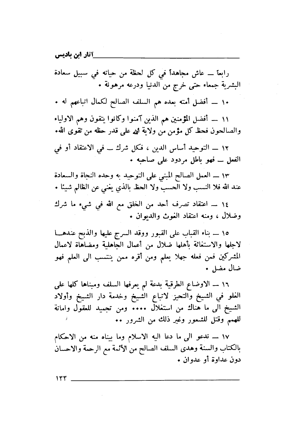 17 - ندعو إلى ما دعا إليه الإسلام وما بيناه منه من الأحكام بالكتاب والسنة وهدي السلف الصالح من الأئمة مع الرحمة والإحسان دون عداوة أو عدوان.