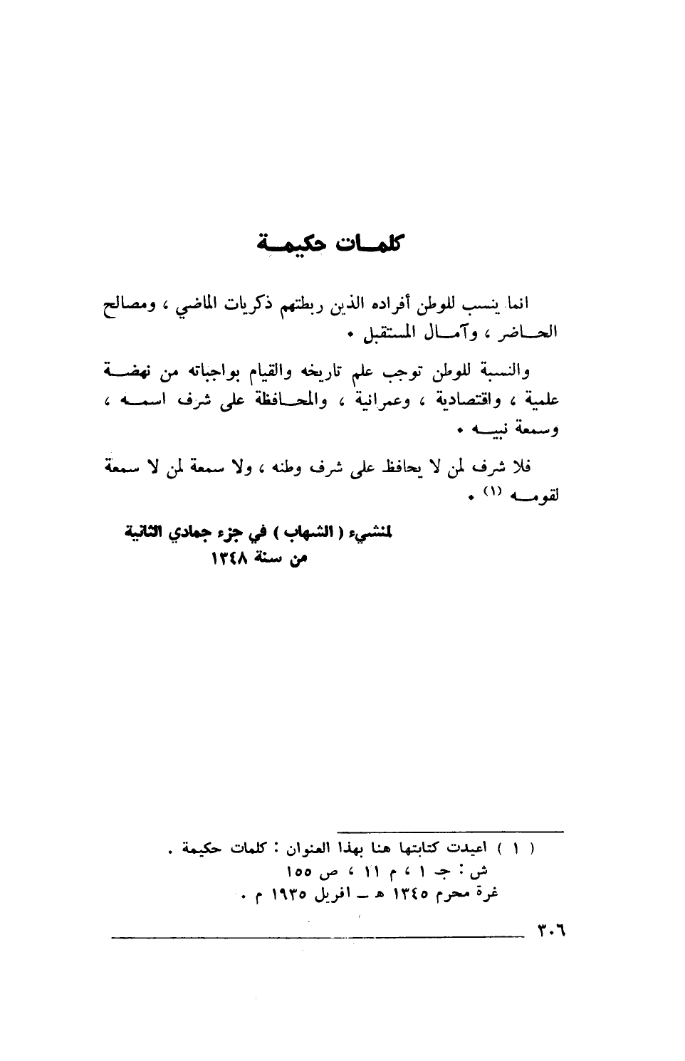(1) أعيدت كتابتها هنا بهذا العنوان: كلمات حكيمة.