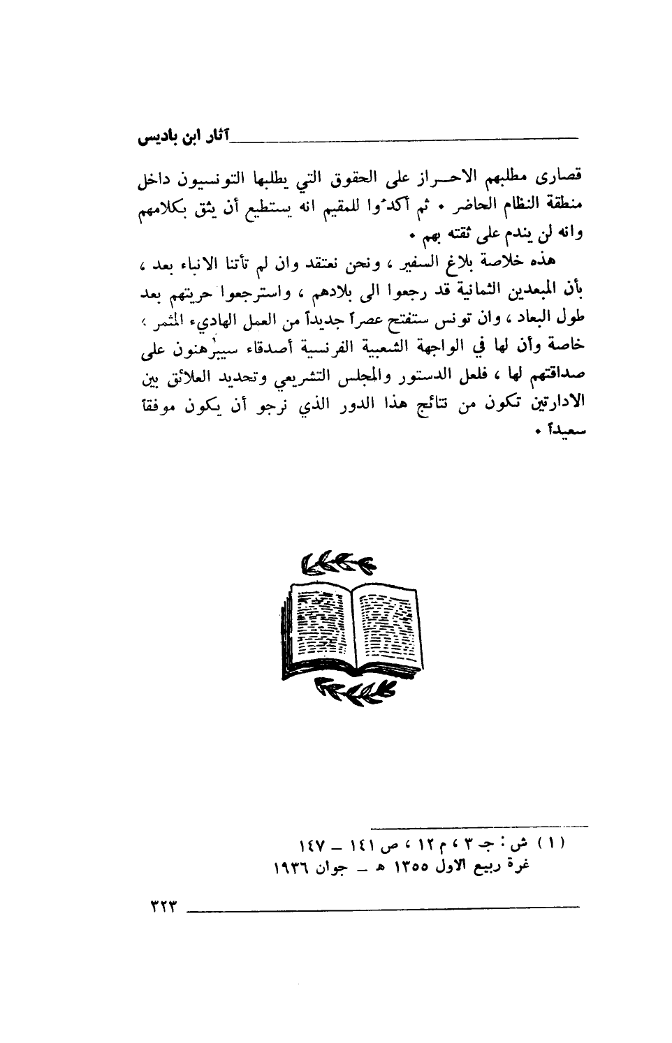 (1) ش: ج 3، م 12، ص 141 - 147 غرة ربيع الأول 1355هـ- جوان 1936.