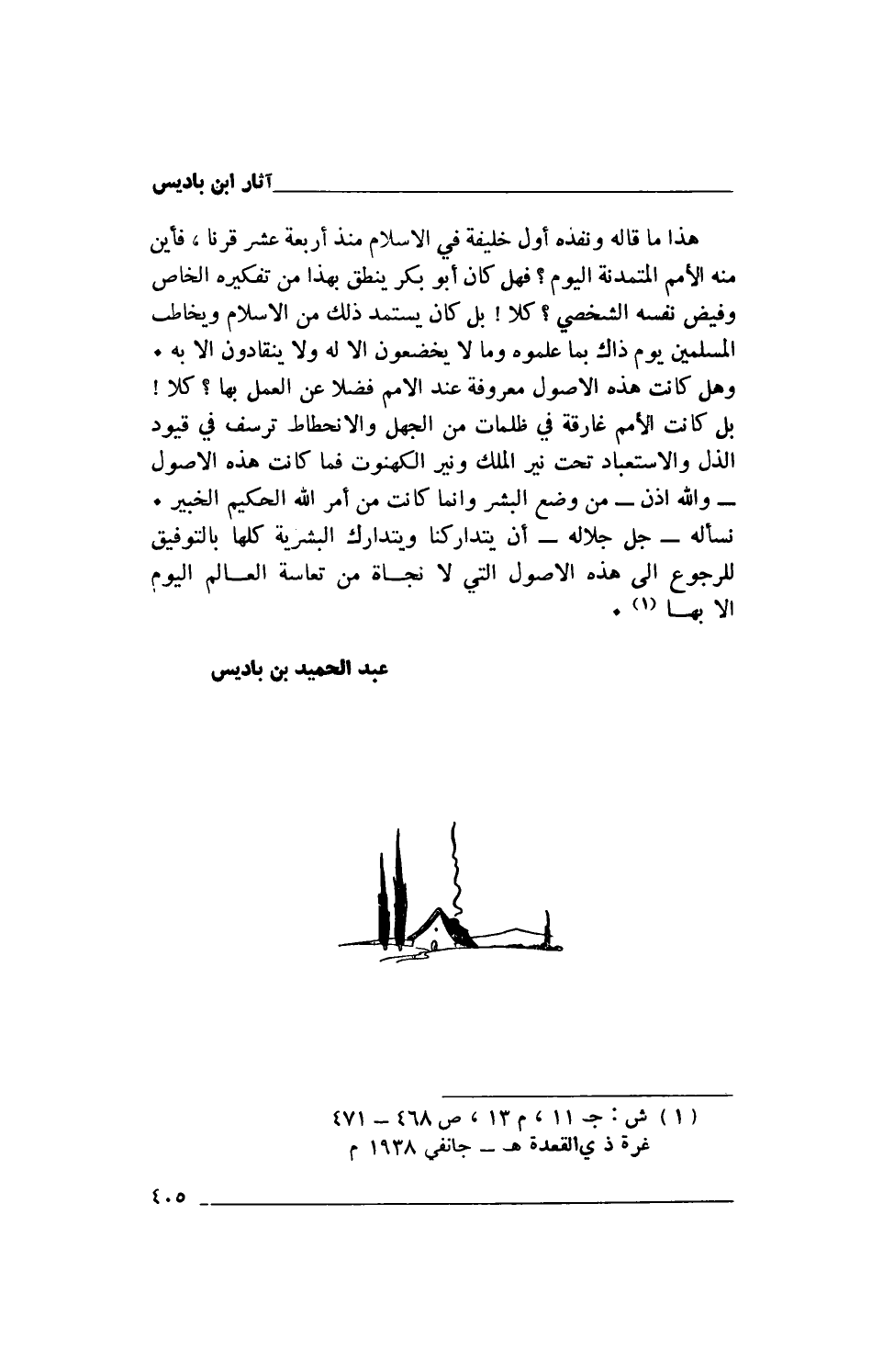(1) ش: ج 11، م 13، ص 468 - 471 غرة ذي القعدة ه - جانفي 1938م.