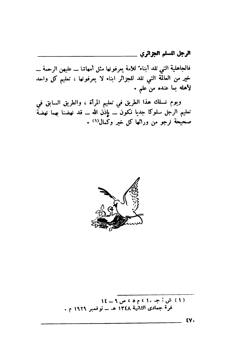 فالجاهلية التي تلد أبناءً للأمة يعرفونها مثل أمهاتنا- عليهن الرحمة- خير من العالمة التي تلد للجزائر أبناء لا يعرفونها، تعليم كل واحد لأهله بما عنده من علم.