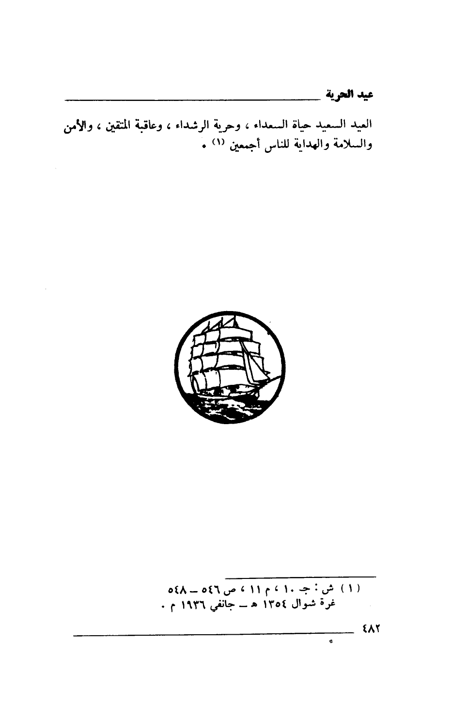 ش: ج 10، م 11، ص 546 - 548 غرة شوال 1354ه - جانفي 1936م.