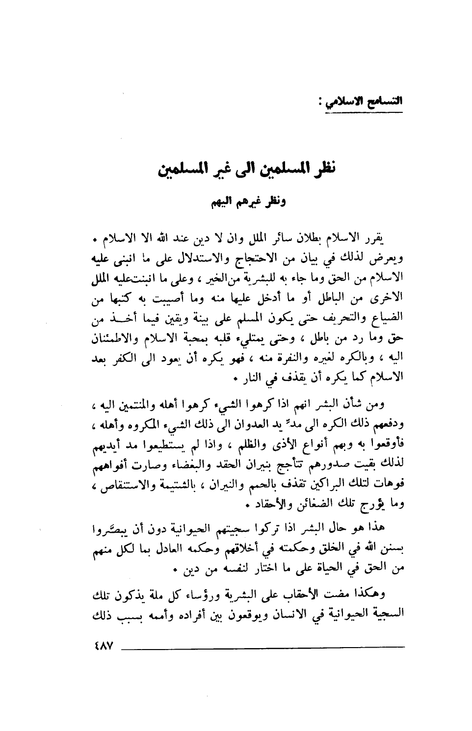 يقرر الإسلام بطلان سائر الملل وأن لا دين عند الله إلا الإسلام. ويعرض ذلك في بيان من الاحتجاج والاستدلال على ما انبنى عليه الإسلام من الحق وما جاء به للبشرية من الخير، وعلى ما انبنت عليه الملل الأخرى من الباطل أو ما أدخل عليها منه وما أصيبت به كتبها من الضياع والتحريف حتى يكون المسلم على بينة ويقين فيما أخذ من حق وما رد من باطل، وحتى يمتليء قلبه بمحبة الإسلام والاطمئنان إليه، وبالكره لغيره والنفرة منه، فهو يكره أن يعود إلى الكفر بعد الإسلام كما يكره أن يقذف في النار.
