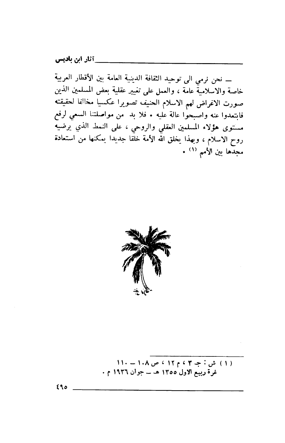 (1) ش: ج 3، م 12، ص 108 - 110 غرة ربيع الأول 1355هـ- جوان 1936م.