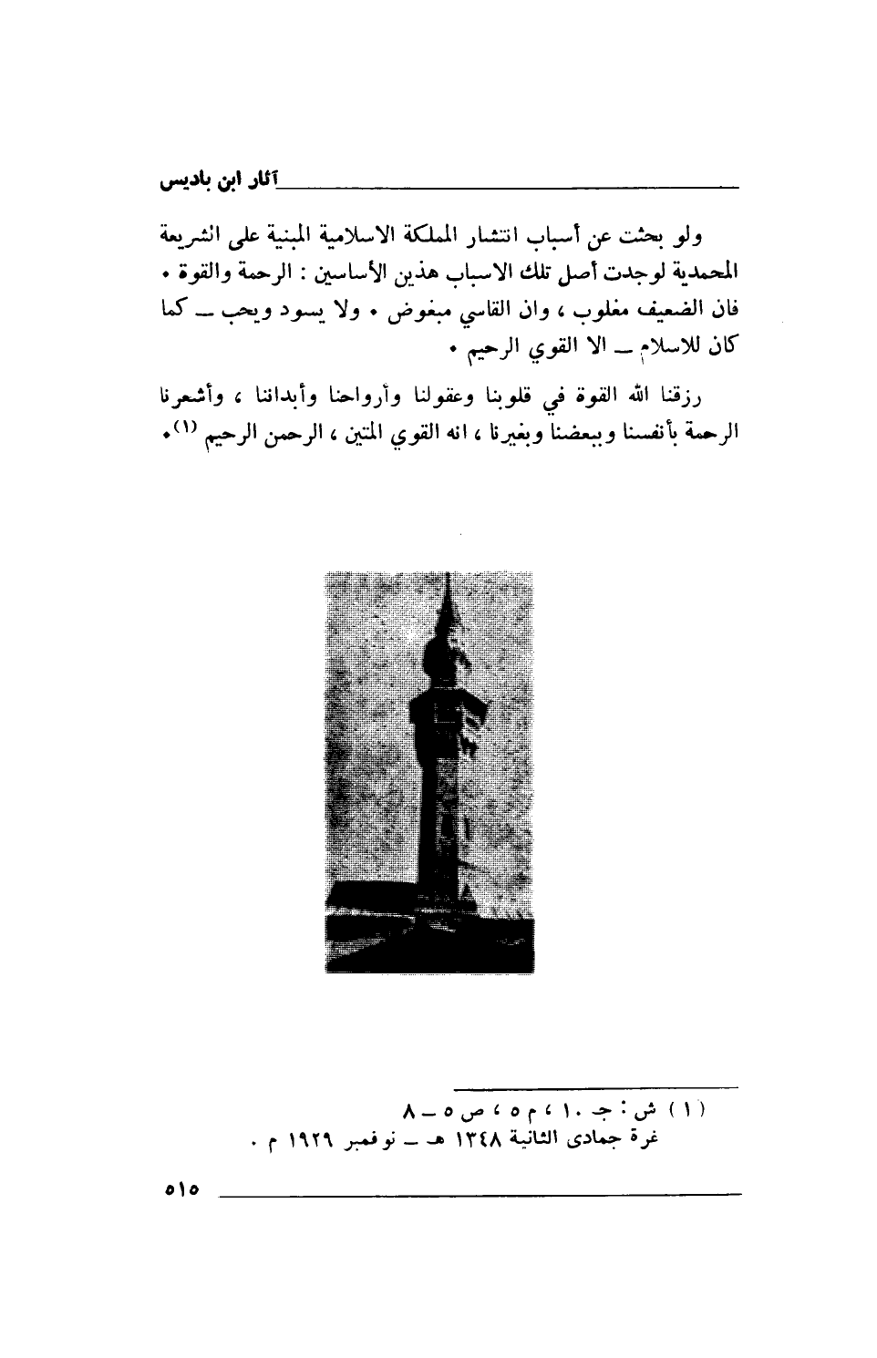(1) ش: ج 10، م 5، ص 5 - 8 غرة جمادى الثانية 1318ه - نوفمبر 1929م.