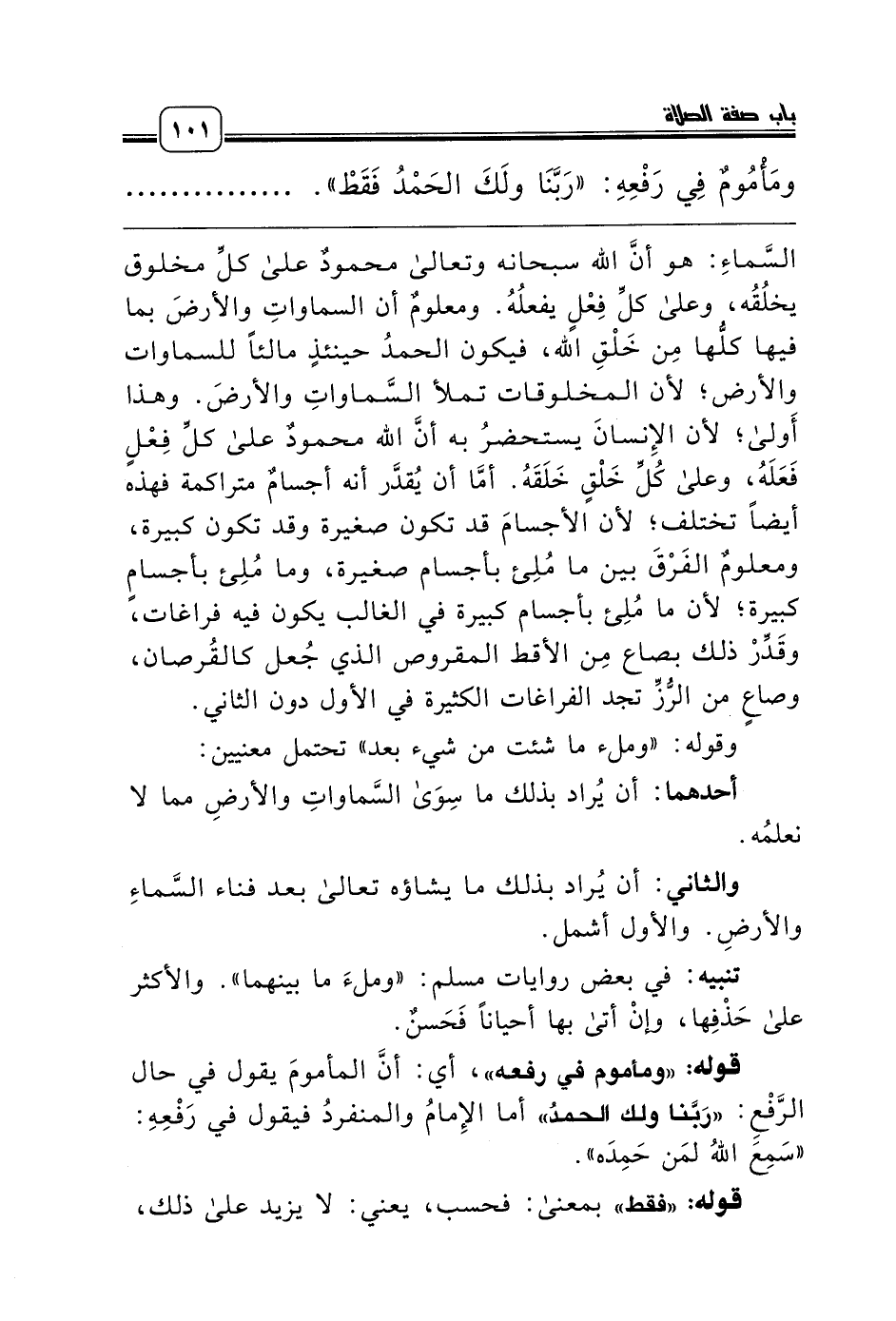 ومَأْمُومٌ فِي رَفْعِهِ: «رَبَّنَا ولَكَ الحَمْدُ فَقَطْ» ............