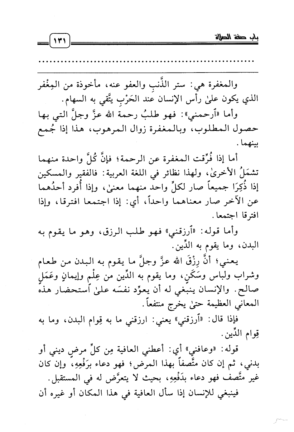 فإذا قال: «ارزقني» يعني: ارزقني ما به قِوام البدن، وما به قِوام الدِّين.