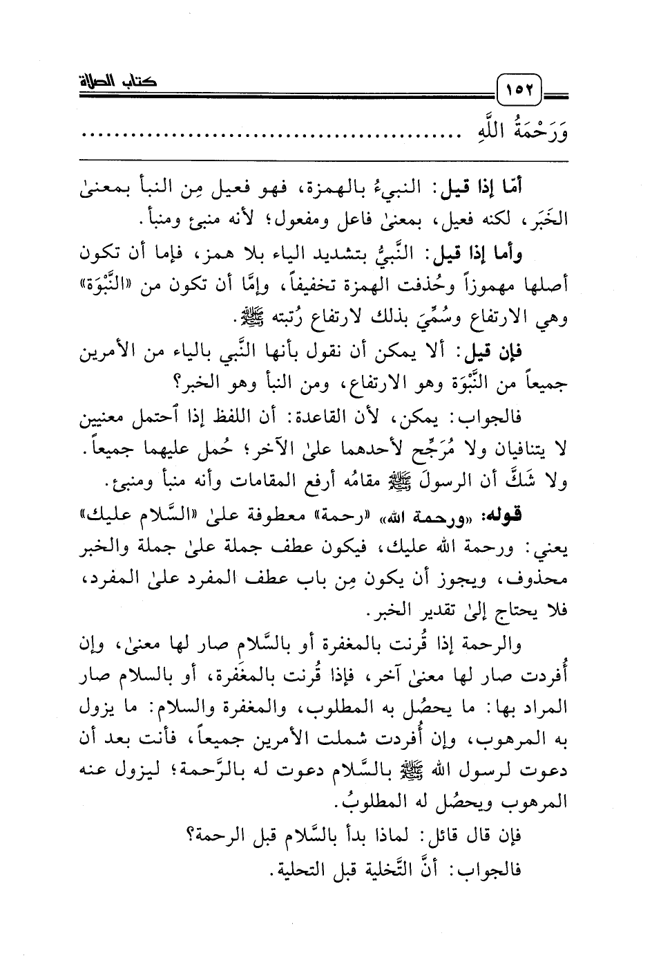 وأما إذا قيل: النَّبيُّ بتشديد الياء بلا همز، فإما أن تكون أصلها مهموزاً وحُذفت الهمزة تخفيفاً، وإمَّا أن تكون من «النَّبْوَة» وهي الارتفاع وسُمِّيَ بذلك لارتفاع رُتبته صلّى الله عليه وسلّم.
