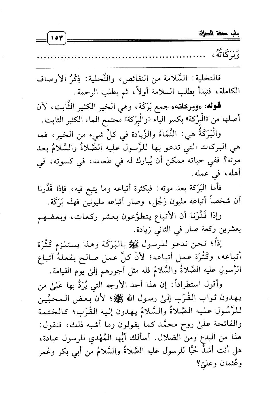 إذاً؛ نحن ندعو للرسول صلّى الله عليه وسلّم بالبَرَكَة وهذا يستلزم كَثْرَة أتباعه، وكَثْرَة عمل أتباعه؛ لأنّ كلَّ عمل صالح يفعلهُ أتباع الرَّسولِ عليه الصَّلاةُ والسَّلامُ فله مثل أجورهم إلى يوم القيامة.