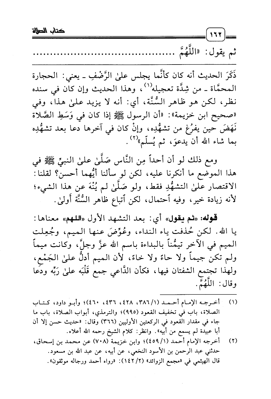 ذَكَرَ الحديث أنه كان كأنَّما يجلس على الرَّضْفِ ـ يعني: الحجارة المحمَّاة ـ من شِدَّة تعجيله (¬1)، وهذا الحديث وإن كان في سنده نظر، لكن هو ظاهر السُّنَّة، أي: أنه لا يزيد على هذا، وفي «صحيح ابن خزيمة»: «أن الرسول صلّى الله عليه وسلّم إذا كان في وَسَطِ الصَّلاة نَهَضَ حين يفرُغ من تشهُّدِه، وإنْ كان في آخرها دعا بعد تشهُّدِه بما شاء الله أن يدعوَ، ثم يُسلّم» (¬2).