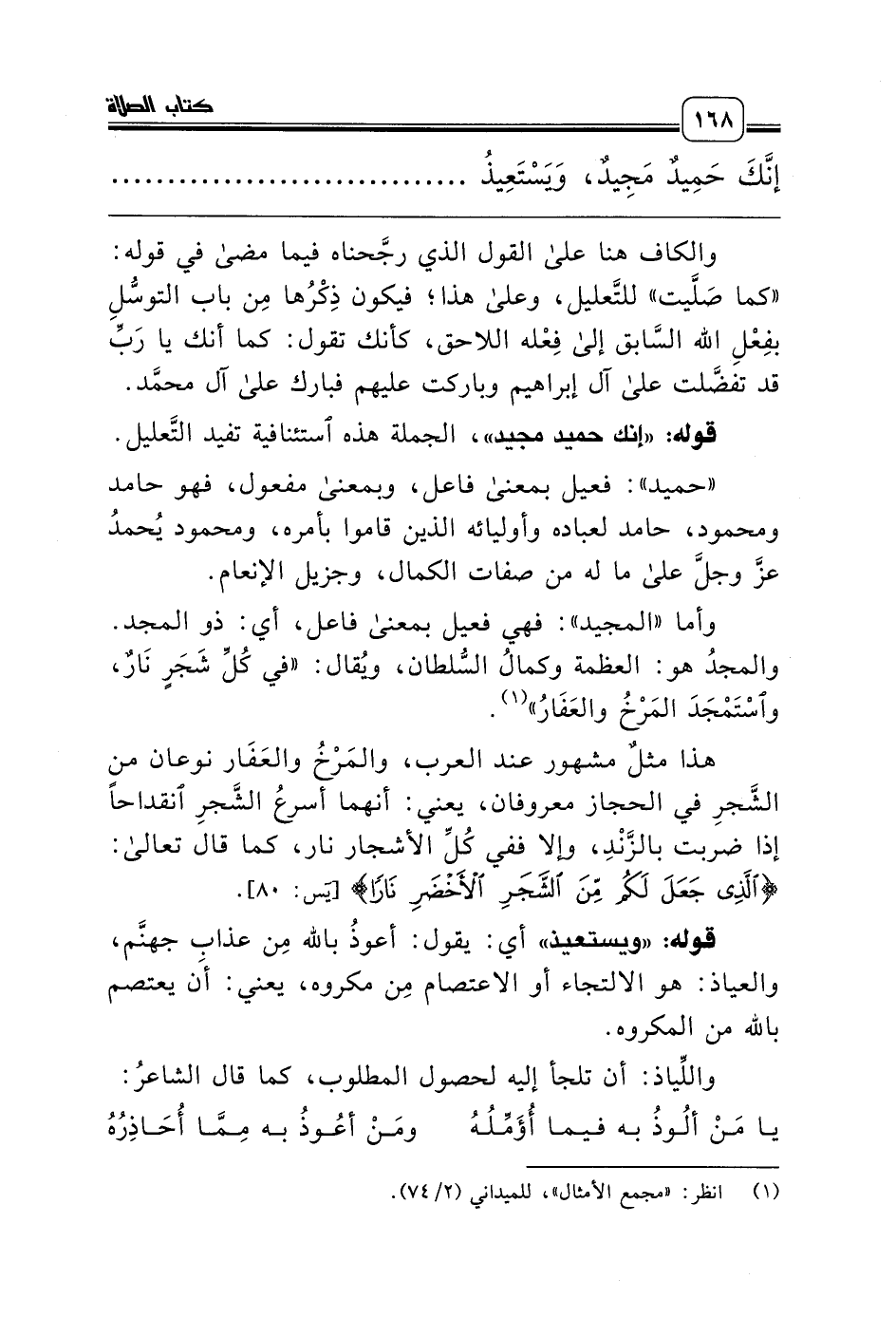 وأما «المجيد»: فهي فعيل بمعنى فاعل، أي: ذو المجد. والمجدُ هو: العظمة وكمالُ السُّلطان، ويُقال: «في كُلِّ شَجَرٍ نَارٌ، واسْتَمْجَدَ المَرْخُ والعَفَارُ» (¬1).