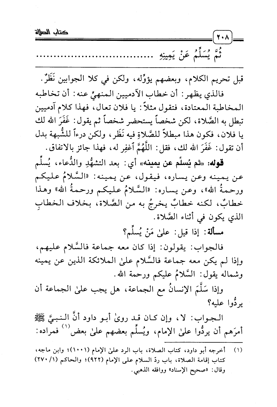 (¬1) أخرجه أبو داود، كتاب الصلاة، باب الرد على الإمام (1001)؛ وابن ماجه، كتاب إقامة الصلاة، باب ردّ السلام على الإمام (922)؛ والحاكم (1/ 270) وقال: «صحيح الإسناد» ووافقه الذهبي.