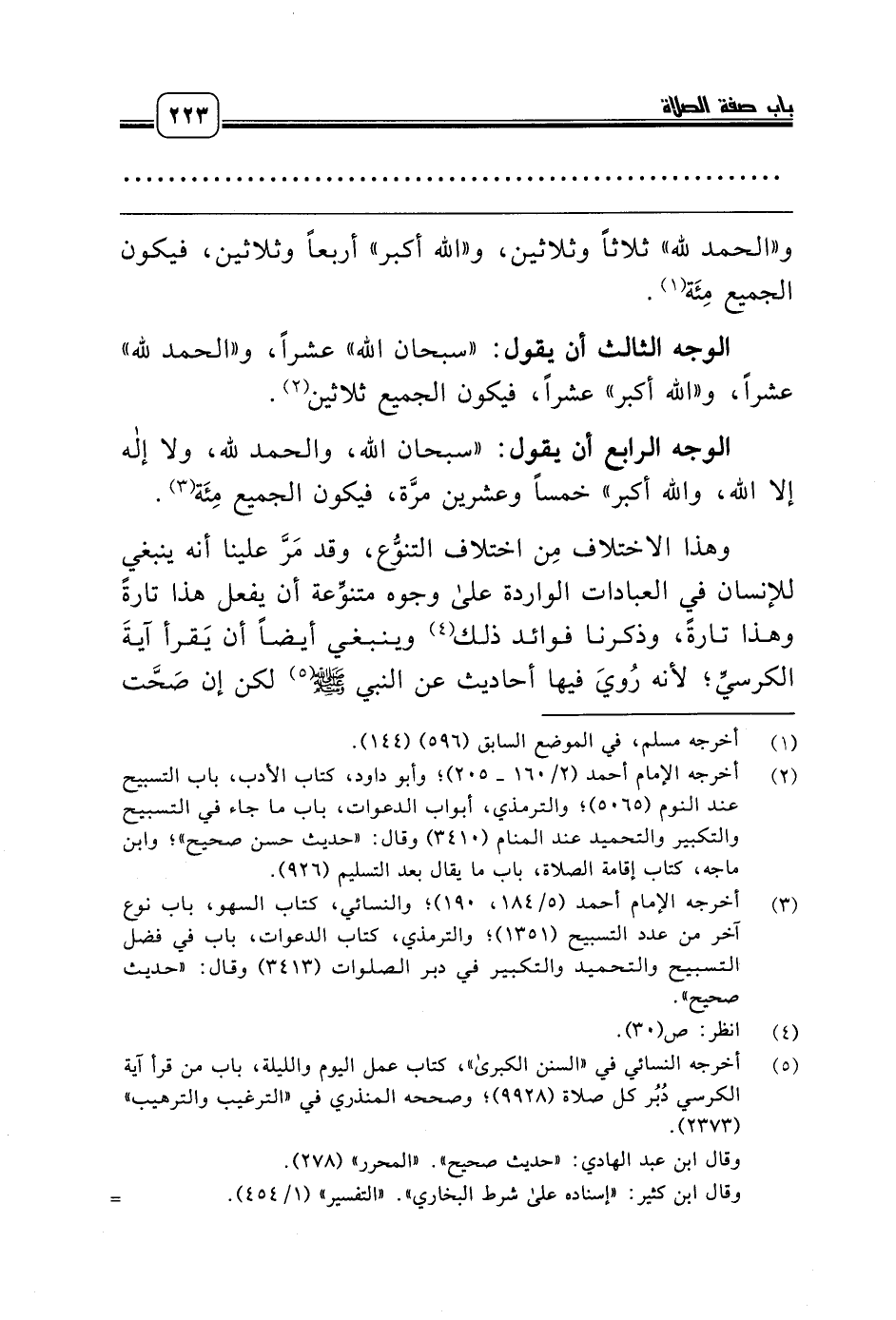 (¬3) أخرجه الإمام أحمد (5/ 184، 190)؛ والنسائي، كتاب السهو، باب نوع آخر من عدد التسبيح (1351)؛ والترمذي، كتاب الدعوات، باب في فضل التسبيح والتحميد والتكبير في دبر الصلوات (3413) وقال: «حديث صحيح».