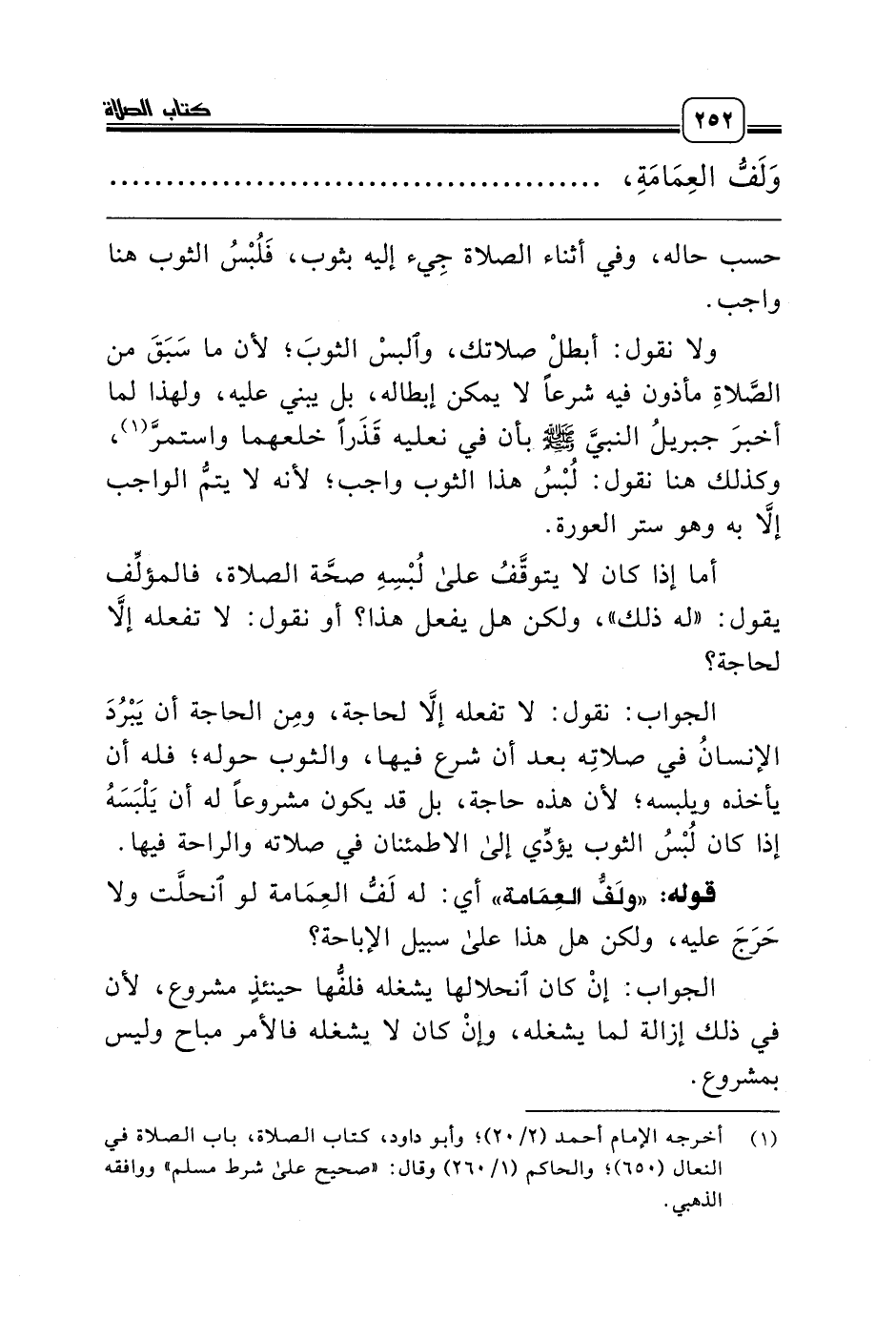 قوله: «ولَفُّ العِمَامة» أي: له لَفُّ العِمَامة لو انحلَّت ولا حَرَجَ عليه، ولكن هل هذا على سبيل الإباحة؟