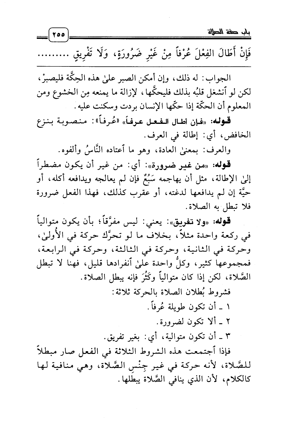 فإذا اجتمعت هذه الشروط الثلاثة في الفعل صار مبطلاً للصَّلاة، لأنه حركة في غير جِنْسِ الصَّلاة، وهي منافية لها كالكلام، لأن الذي ينافي الصَّلاة يبطلها.