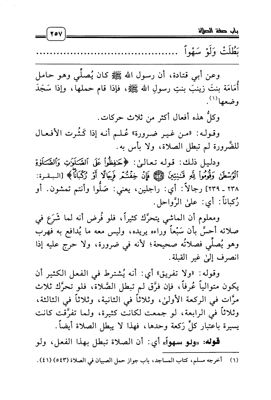 (¬1) أخرجه مسلم، كتاب المساجد، باب جواز حمل الصبيان في الصلاة (543) (41).