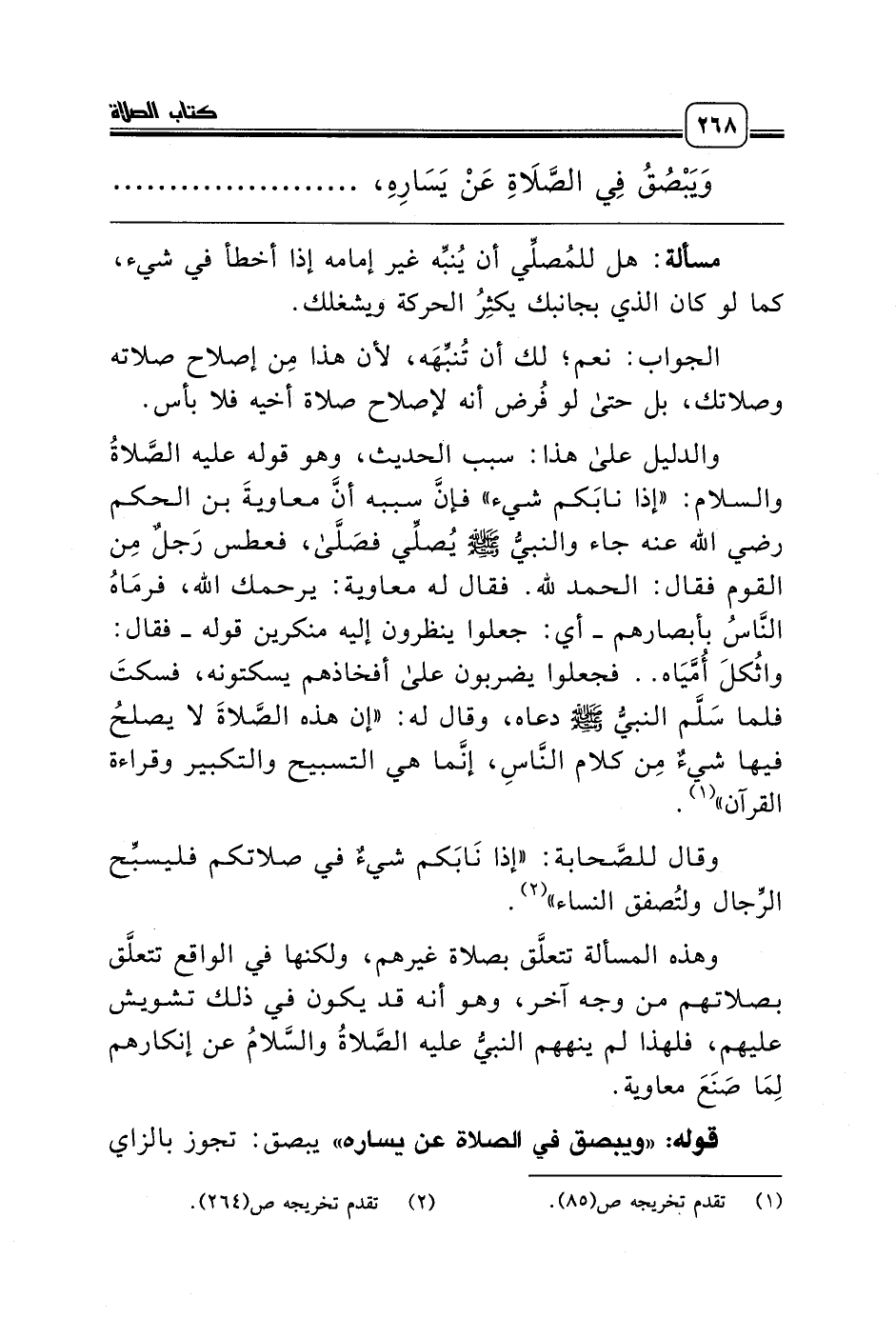 وهذه المسألة تتعلَّق بصلاة غيرهم، ولكنها في الواقع تتعلَّق بصلاتهم من وجه آخر، وهو أنه قد يكون في ذلك تشويش عليهم، فلهذا لم ينههم النبيُّ عليه الصَّلاةُ والسَّلامُ عن إنكارهم لِمَا صَنَعَ معاوية.