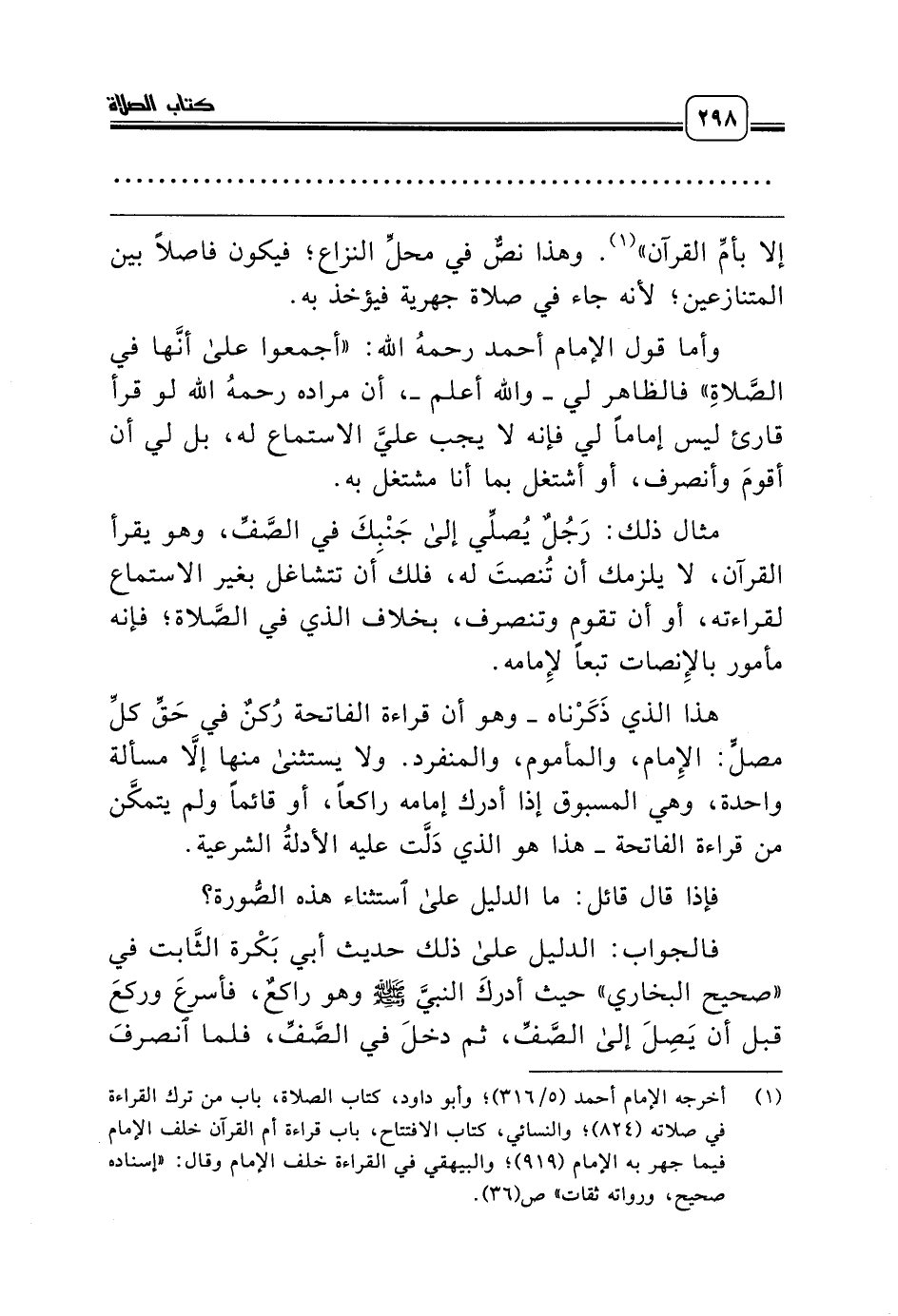 (¬1) أخرجه الإمام أحمد (5/ 316)؛ وأبو داود، كتاب الصلاة، باب من ترك القراءة في صلاته (824)؛ والنسائي، كتاب الافتتاح، باب قراءة أم القرآن خلف الإمام فيما جهر به الإمام (919)؛ والبيهقي في القراءة خلف الإمام وقال: «إسناده صحيح، ورواته ثقات» ص (36).