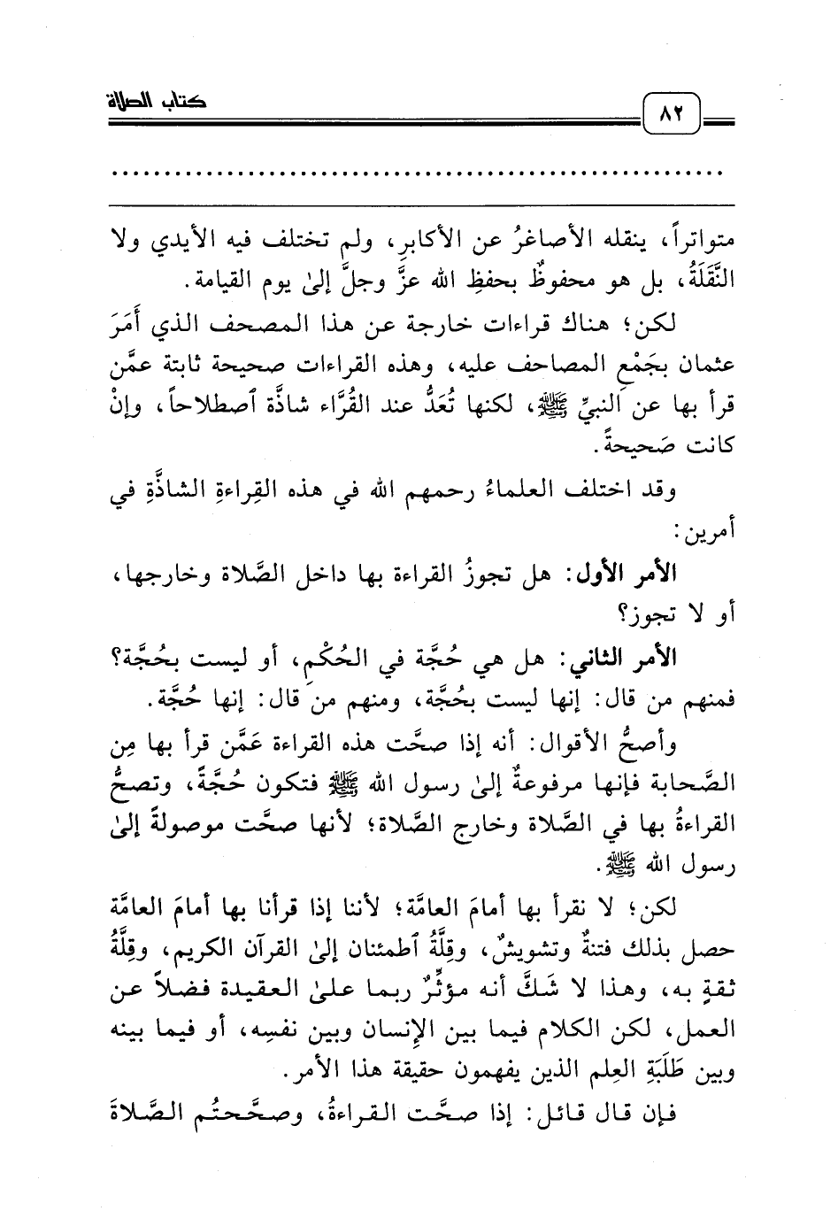 الأمر الأول: هل تجوزُ القراءة بها داخل الصَّلاة وخارجها، أو لا تجوز؟