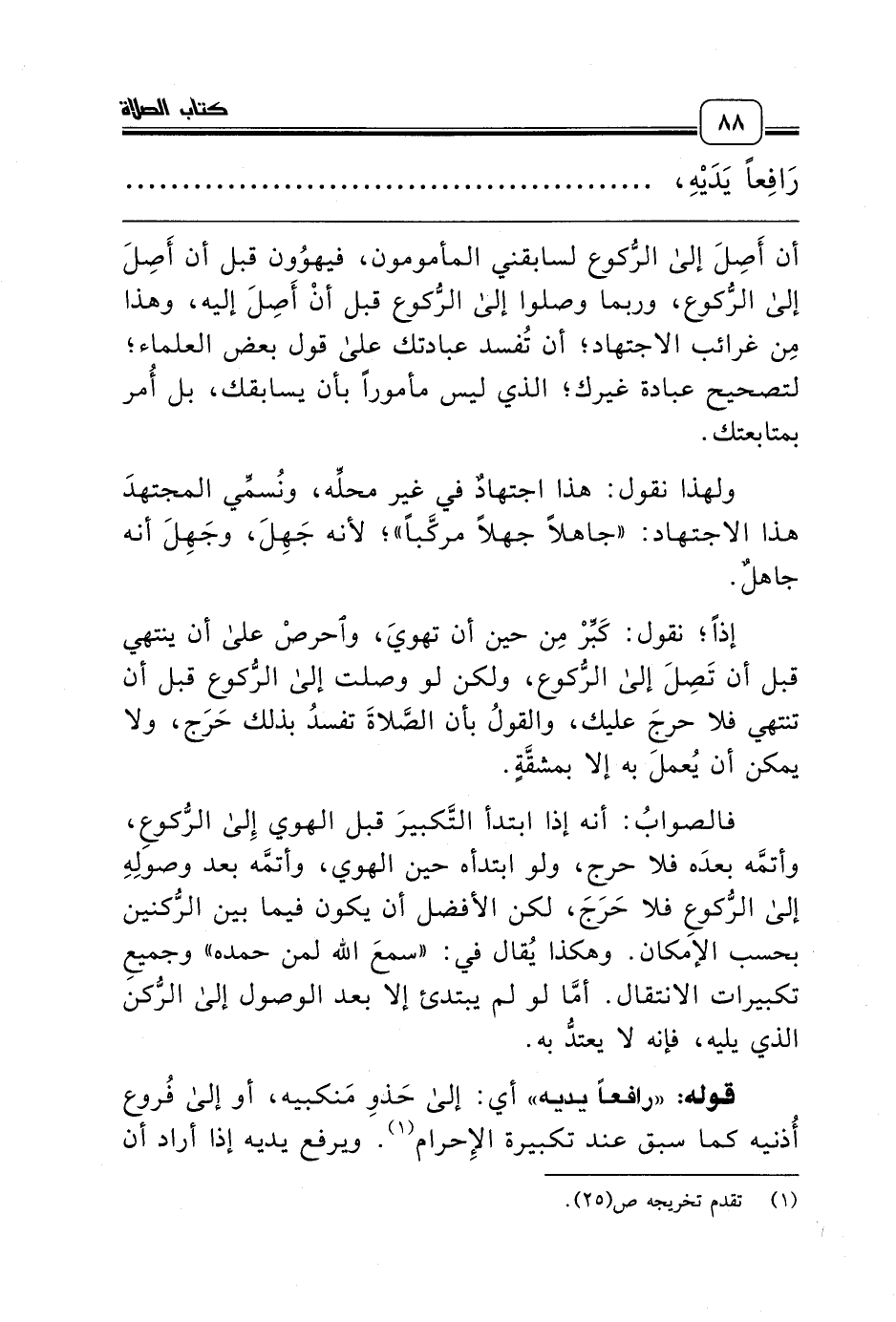 أن أَصِلَ إلى الرُّكوع لسابقني المأمومون، فيهوُون قبل أن أَصِلَ إلى الرُّكوع، وربما وصلوا إلى الرُّكوع قبل أنْ أَصِلَ إليه، وهذا مِن غرائب الاجتهاد؛ أن تُفسد عبادتك على قول بعض العلماء؛ لتصحيح عبادة غيرك؛ الذي ليس مأموراً بأن يسابقك، بل أُمر بمتابعتك.