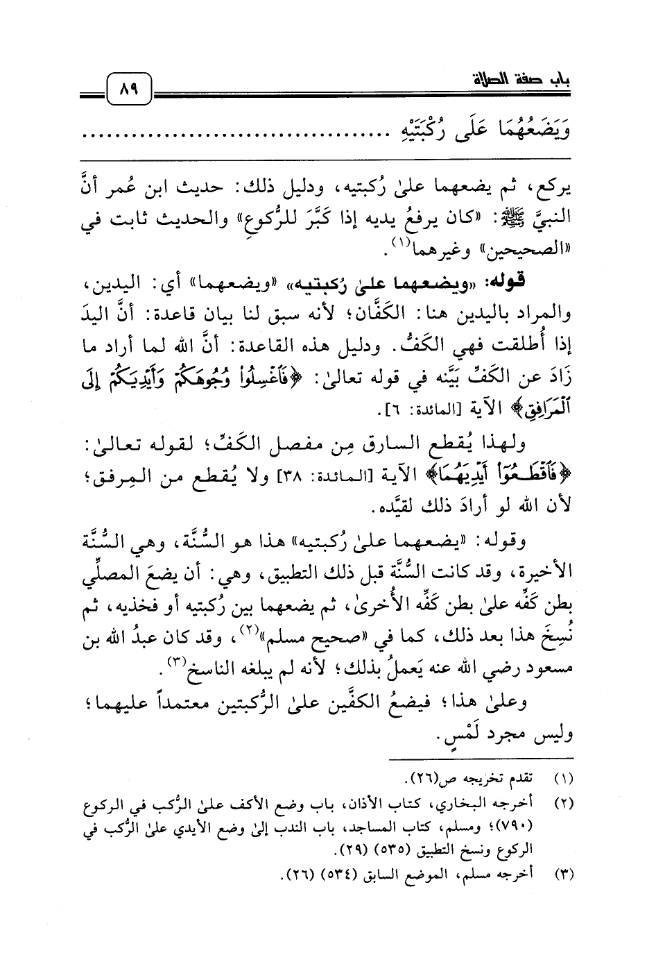 (¬2) أخرجه البخاري، كتاب الأذان، باب وضع الأكف على الرُّكب في الركوع (790)؛ ومسلم، كتاب المساجد، باب الندب إلى وضع الأيدي على الرُّكب في الركوع ونسخ التطبيق (535) (29).