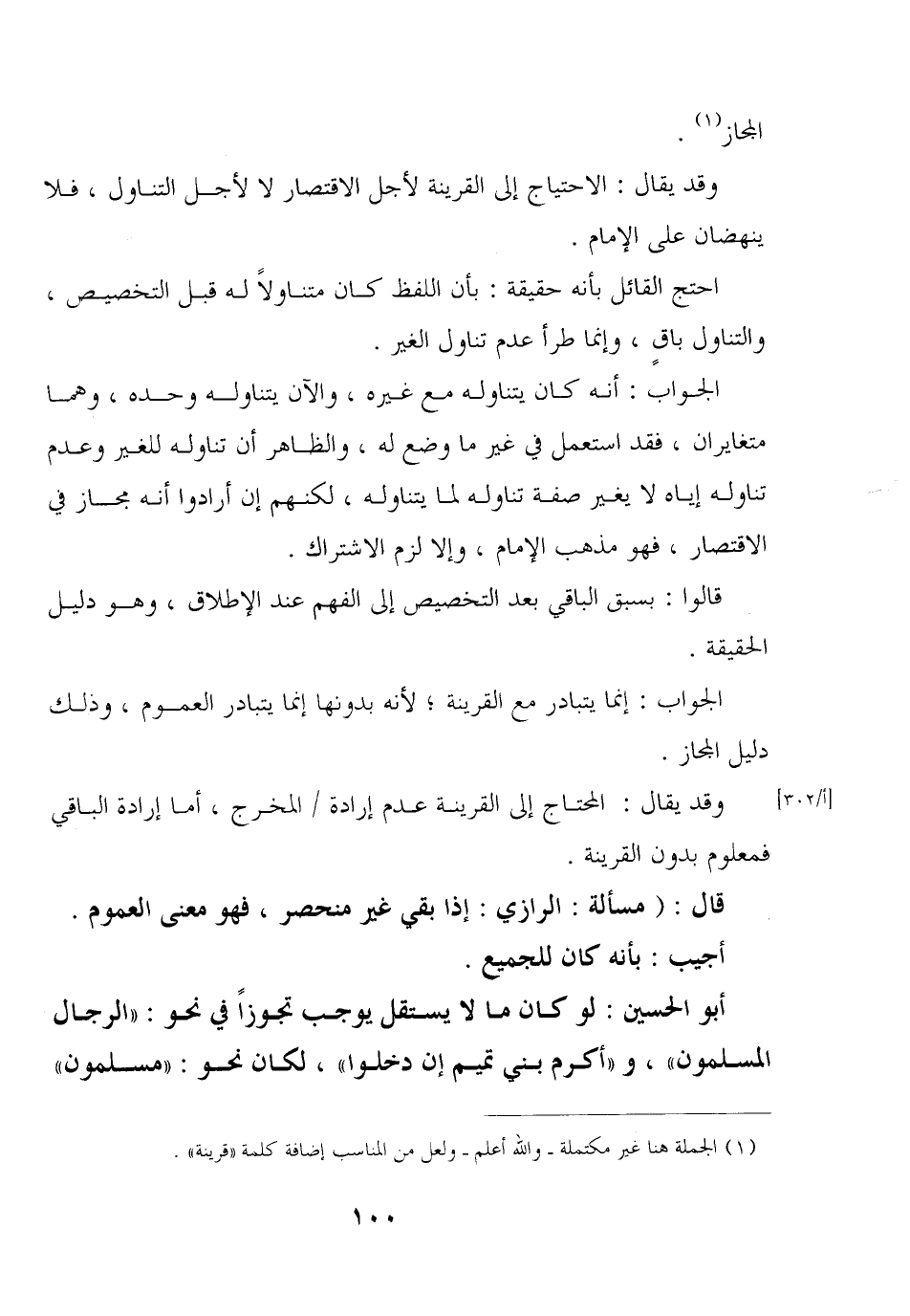 أبو الحسين: لو كان ما لا يستقل يوجب تجوزًا في نحو: «الرجال المسلمون» , و «أكرم بني تميم إن دخلوا» , لكان نحو: «مسلمون»