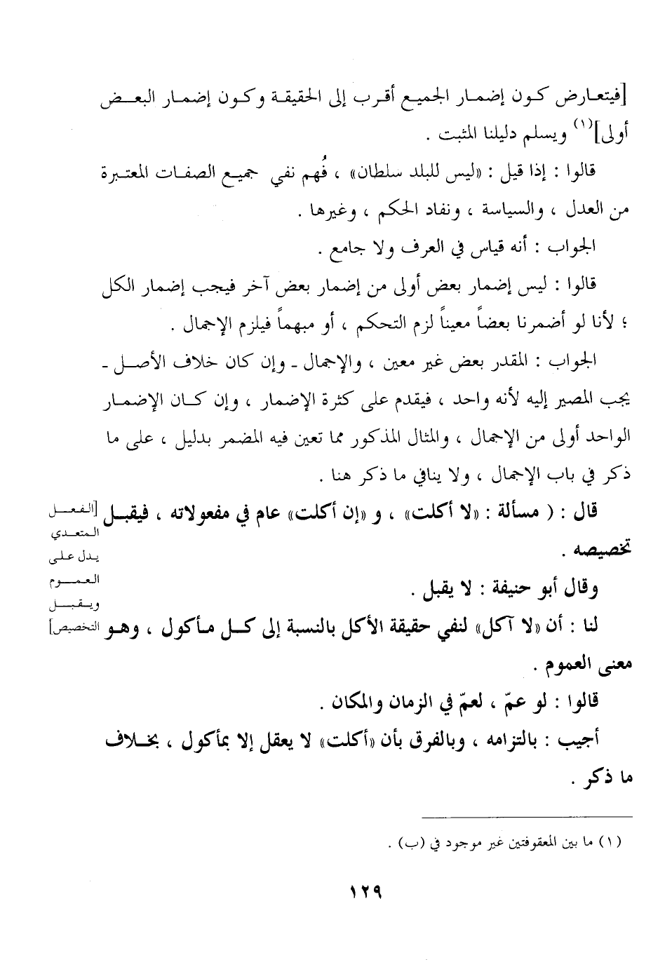 لنا: أن «لا آكل» لنفي حقيقة الأكل بالنسبة إلى كل مأكول, هو معنى العموم.