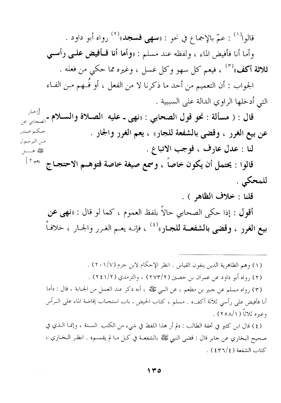 قال: (مسألة: نحو قول الصحابي: «نهى - عليه الصلاة والسلم - عن بيع الغرر, وقضى بالشفعة للجار» , يعم الغرر والجار.