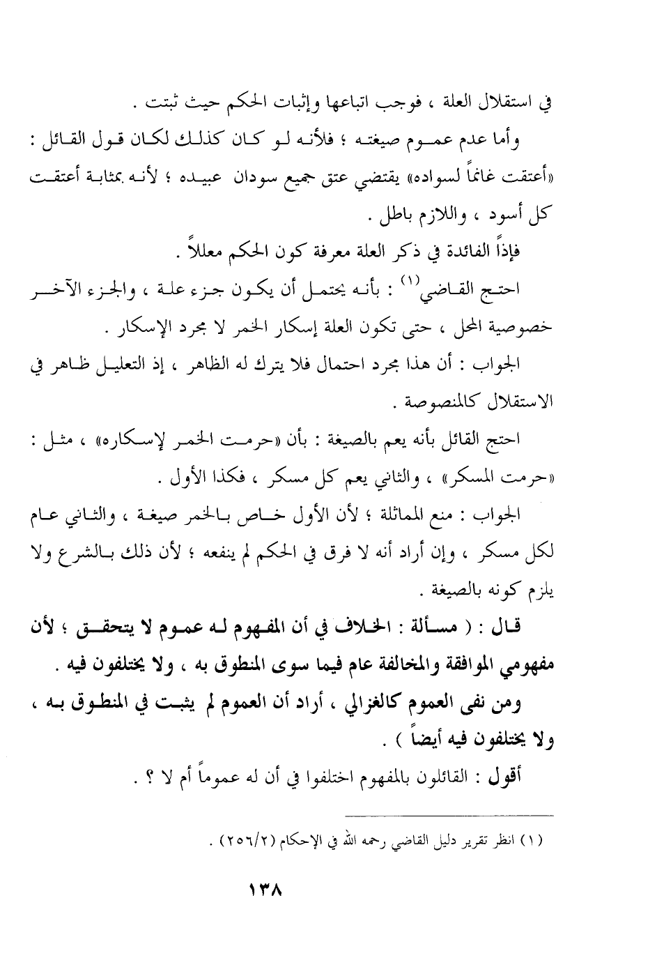 احتج القائل بأنه يعم بالصيغة: بأن «حرمت الخمر لإسكاره» , مثل: «حرمت المسكر» , والثاني يعم كل مسكر, فكذا الأول.