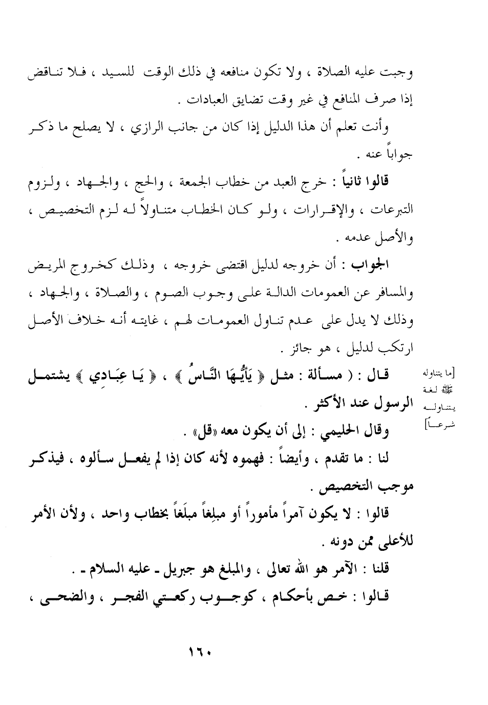 قال: (مسألة: مثل {يأيها الناس} , {يا عبادي} يشتمل الرسول عند الأكثر.