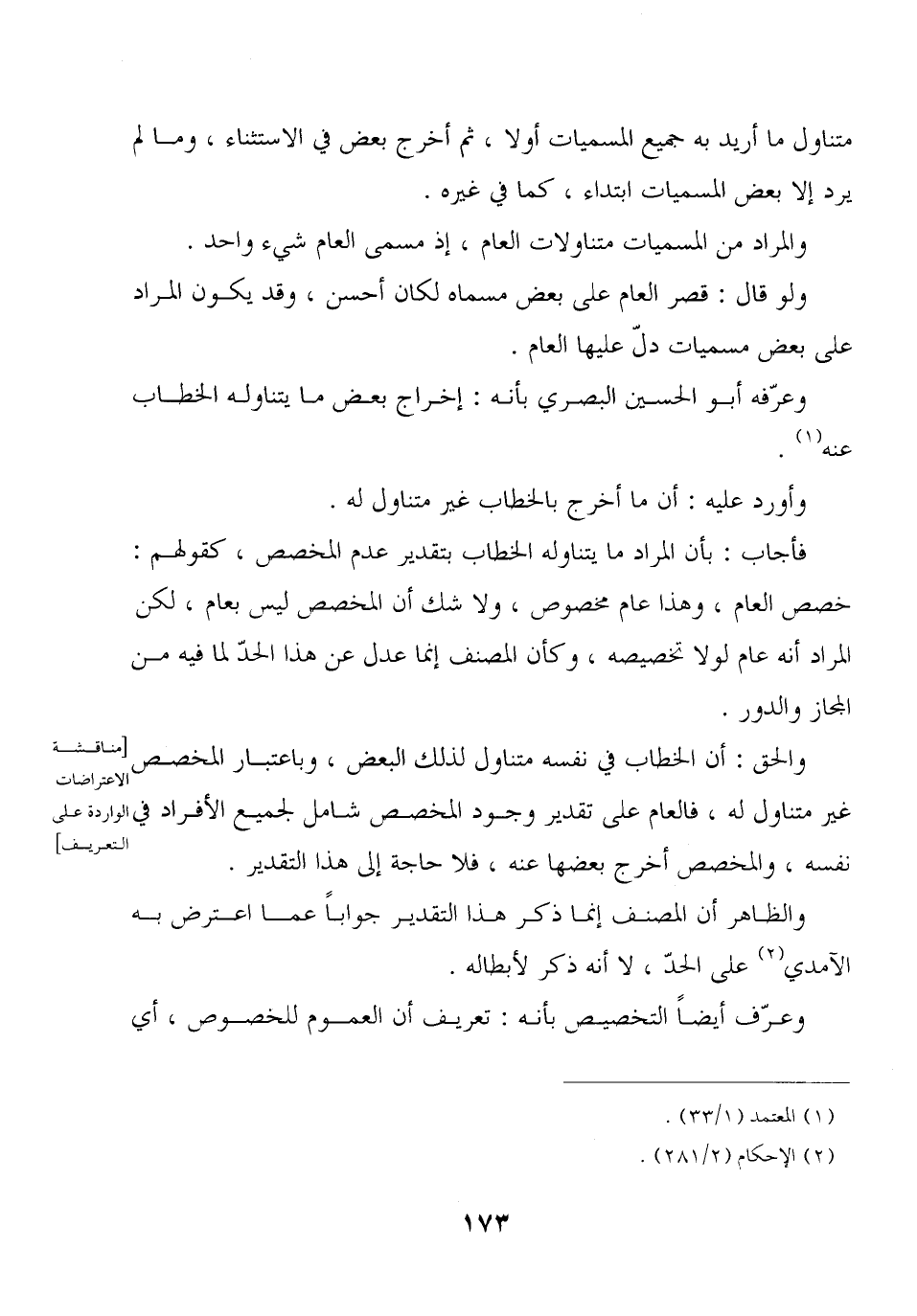 وعرّف أيضًا التخصيص بأنه: تعريف أن العموم للخصوص, أي