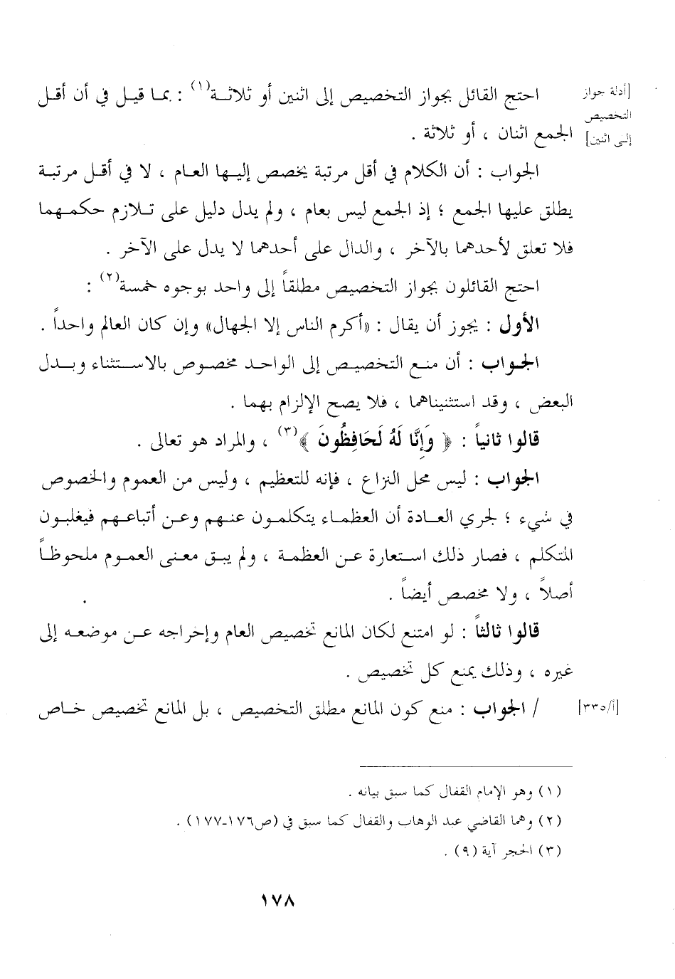 الجواب: أن الكلام في أقل مرتبة يخصص إليها العام, لا في أقل مرتبة يطلق عليها الجمع؛ إذ الجمع ليس بعام, ولم يدل دليل على تلازم حكمهما فلا تعلق لأحدهما بالآخر, والدال على أحدهما لا يدل على الآخر.