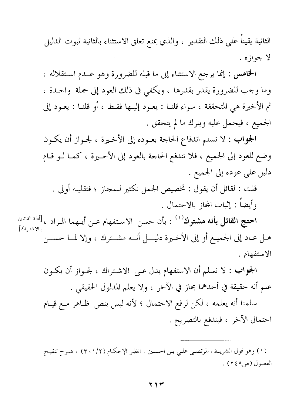 الجواب: لا نسلم أن الاستفهام يدل على الاشتراك, لجواز أن يكون علم أنه حقيقة في أحدهما مجاز في الآخر, ولا يعلم المدلول الحقيقي.