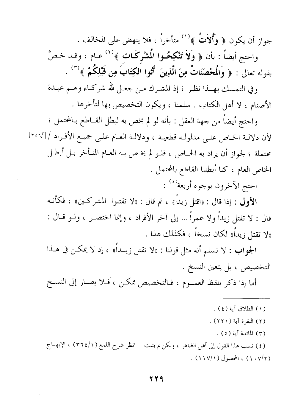 وفي التمسك بهذا النظر؛ إذ المشرك من جعل لله شركاء وهم عبدة الأصنام, لا أهل الكتاب. سلمنا, ويكون التخصيص بها لتأخرها.