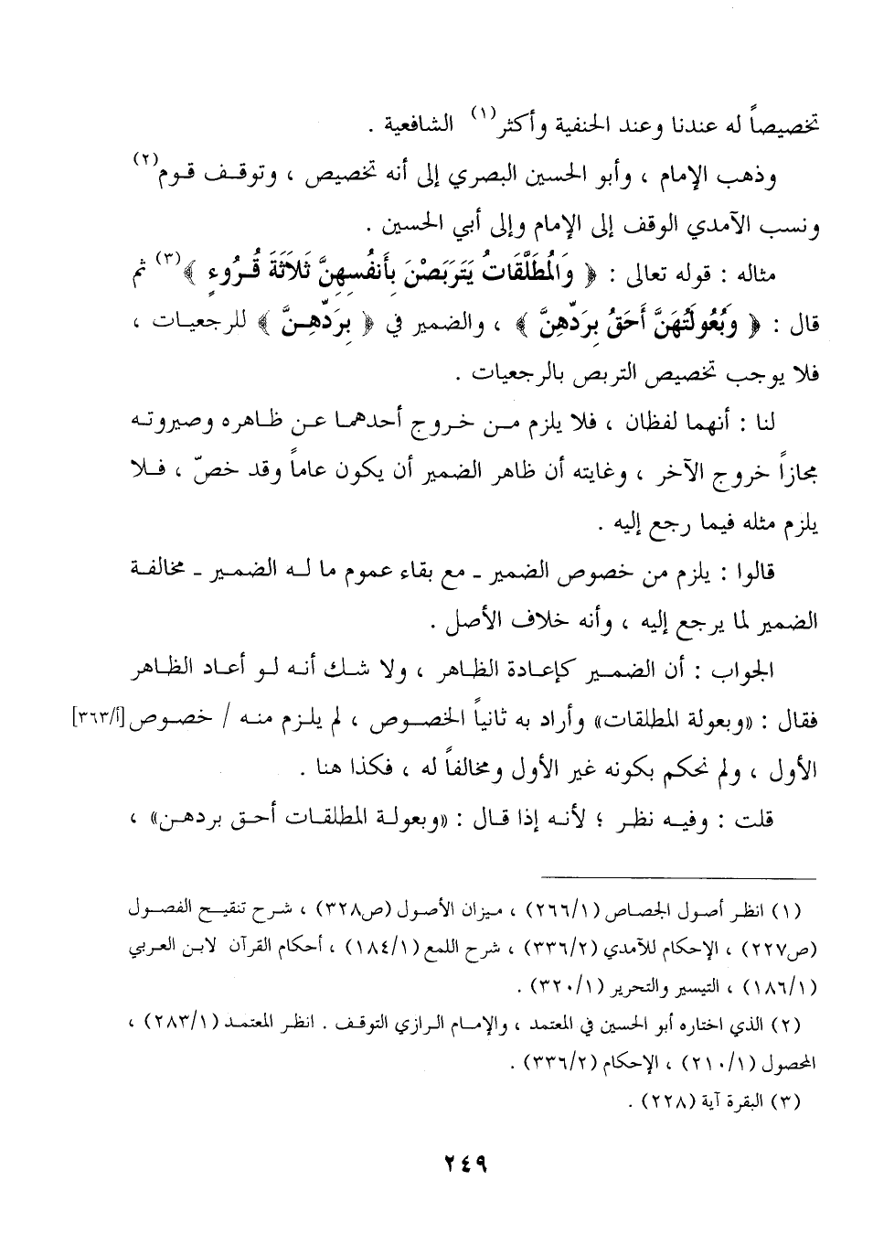 الجواب: أن الضمير كإعادة الظاهر, ولا شك أنه لو أعاد الظاهر فقال: «وبعولة المطلقات» وأراد به ثانيًا الخصوص, لم يلزم منه / خصوص الأول, ولم نحكم بكونه غير الأول ومخالفًا له, فكذا هنا.