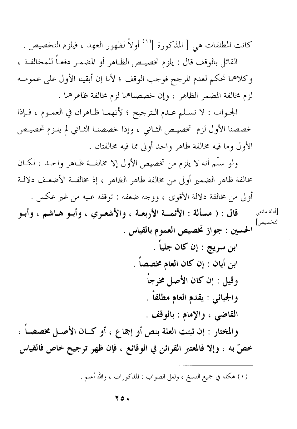 قال: (مسألة: الأئمة الأربعة, والأشعري, وأبو هاشم, وأبو الحسين: جواز تخصيص العموم بالقياس.