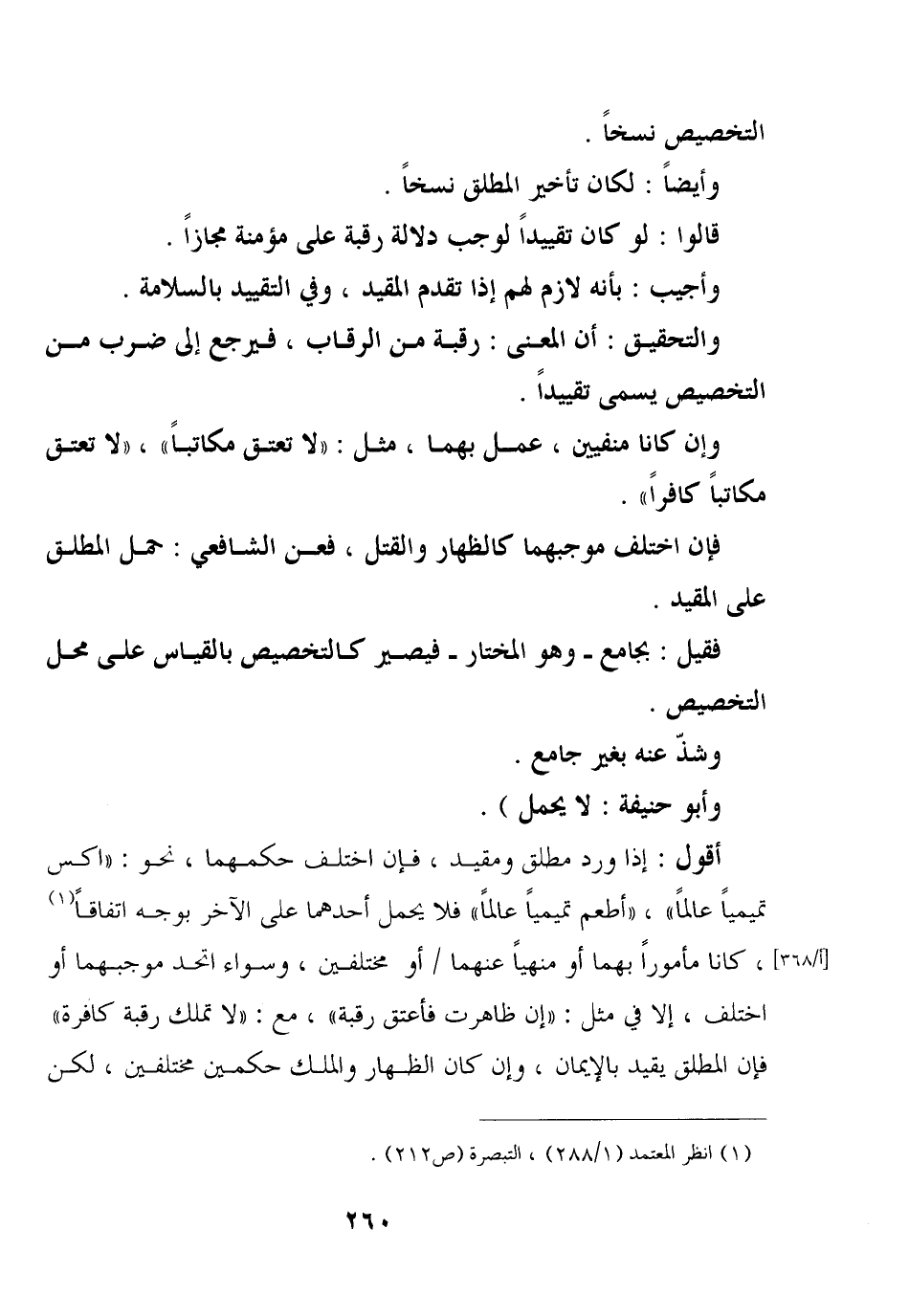والتحقيق: أن المعنى: رقبة من الرقاب, فيرجع إلى ضرب من التخصيص يسمى تقييدًا.