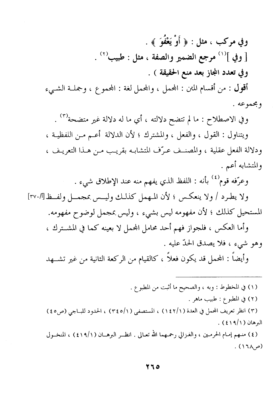 أقول: من أقسام المتن: المجمل, والمجمل لغة: المجموع, وجملة الشيء ومجموعه.