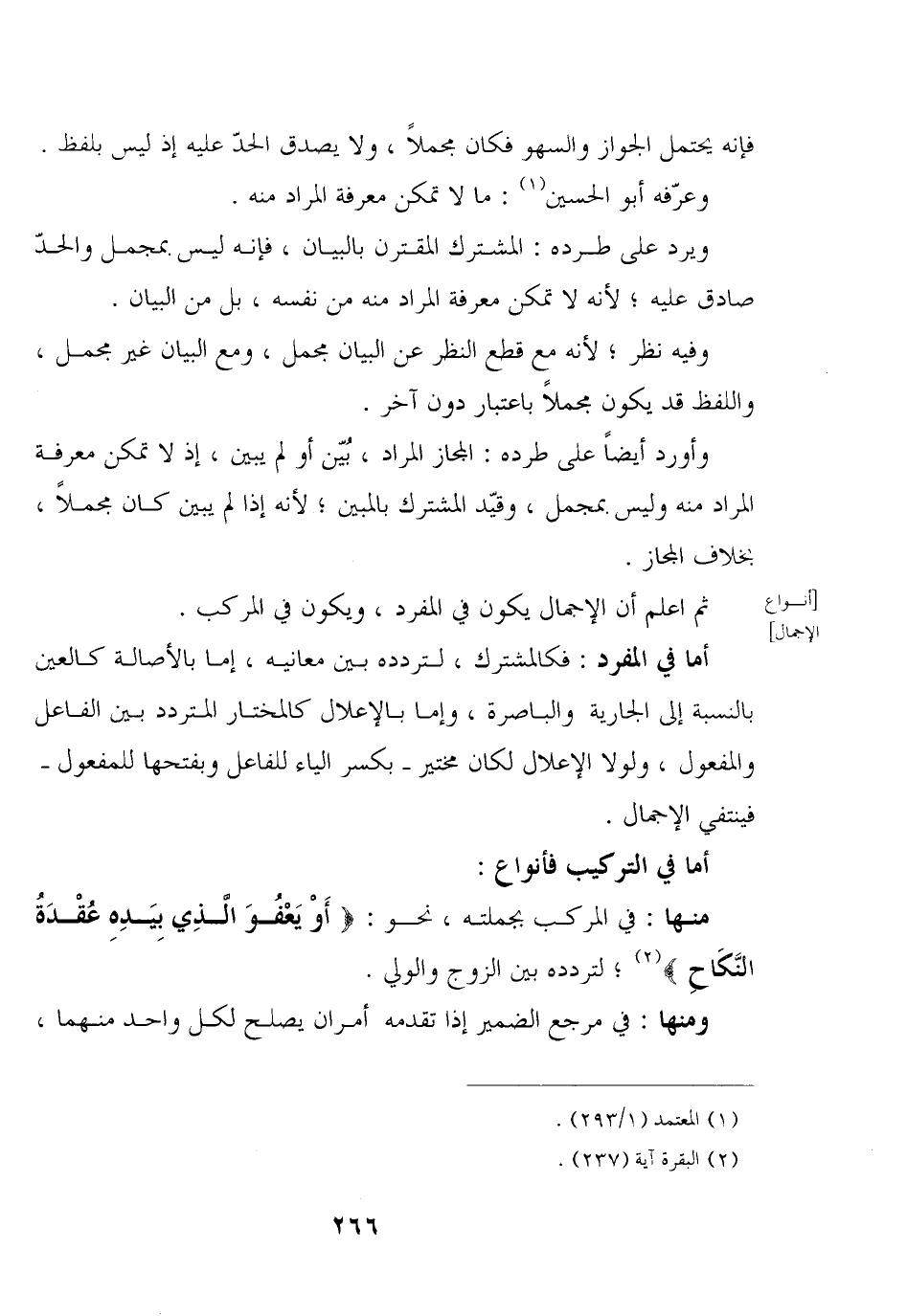 ثم اعلم أن الإجمال يكون في المفرد, ويكون في المركب.