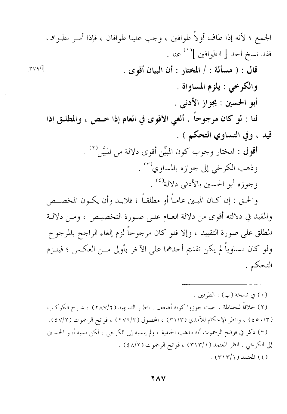 أقول: المختار وجوب كون المبيَّن أقوى دلالة من المبيَّن.