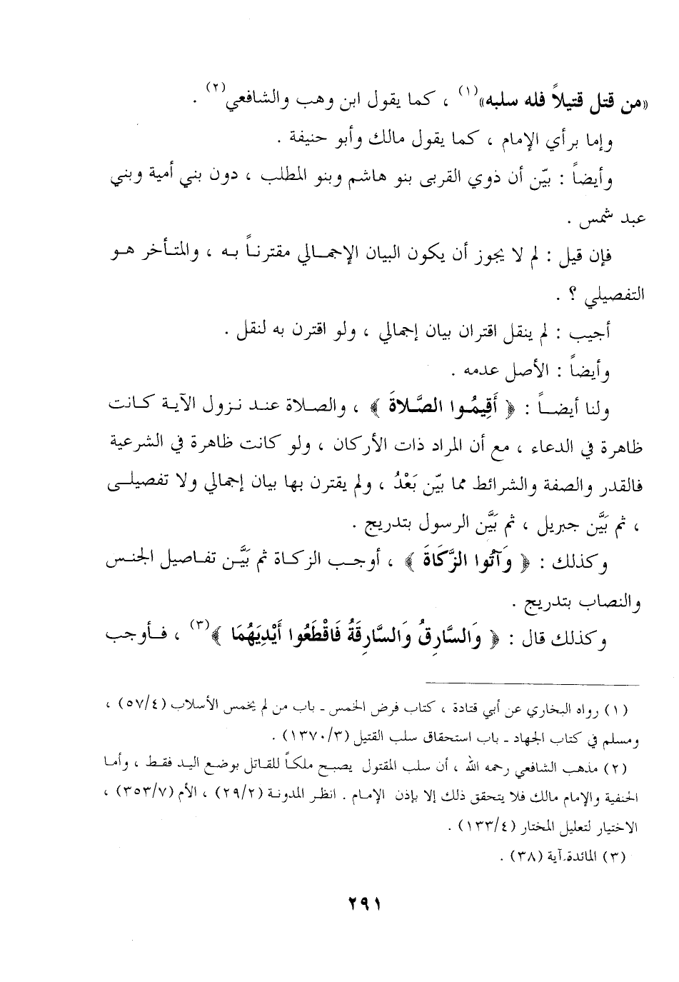 وأيضًا: بيّن أن ذوي القربى بنو هاشم وبنو المطلب, دون بني أمية وبني عبد شمس.