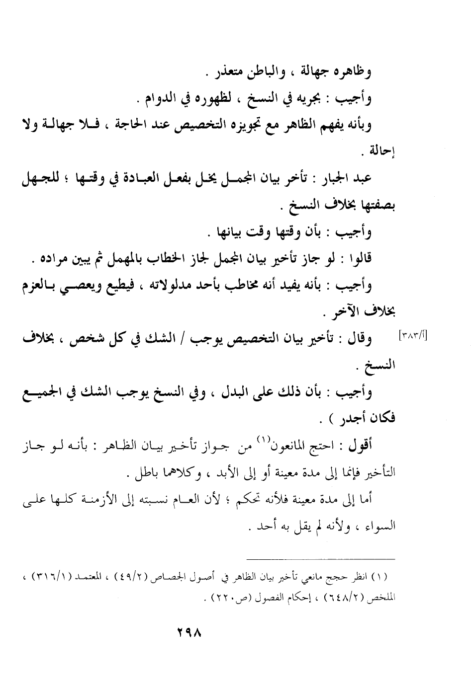 وقال: تأخير بيان التخصيص يوجب / الشك في كل شخص, بخلاف النسخ.