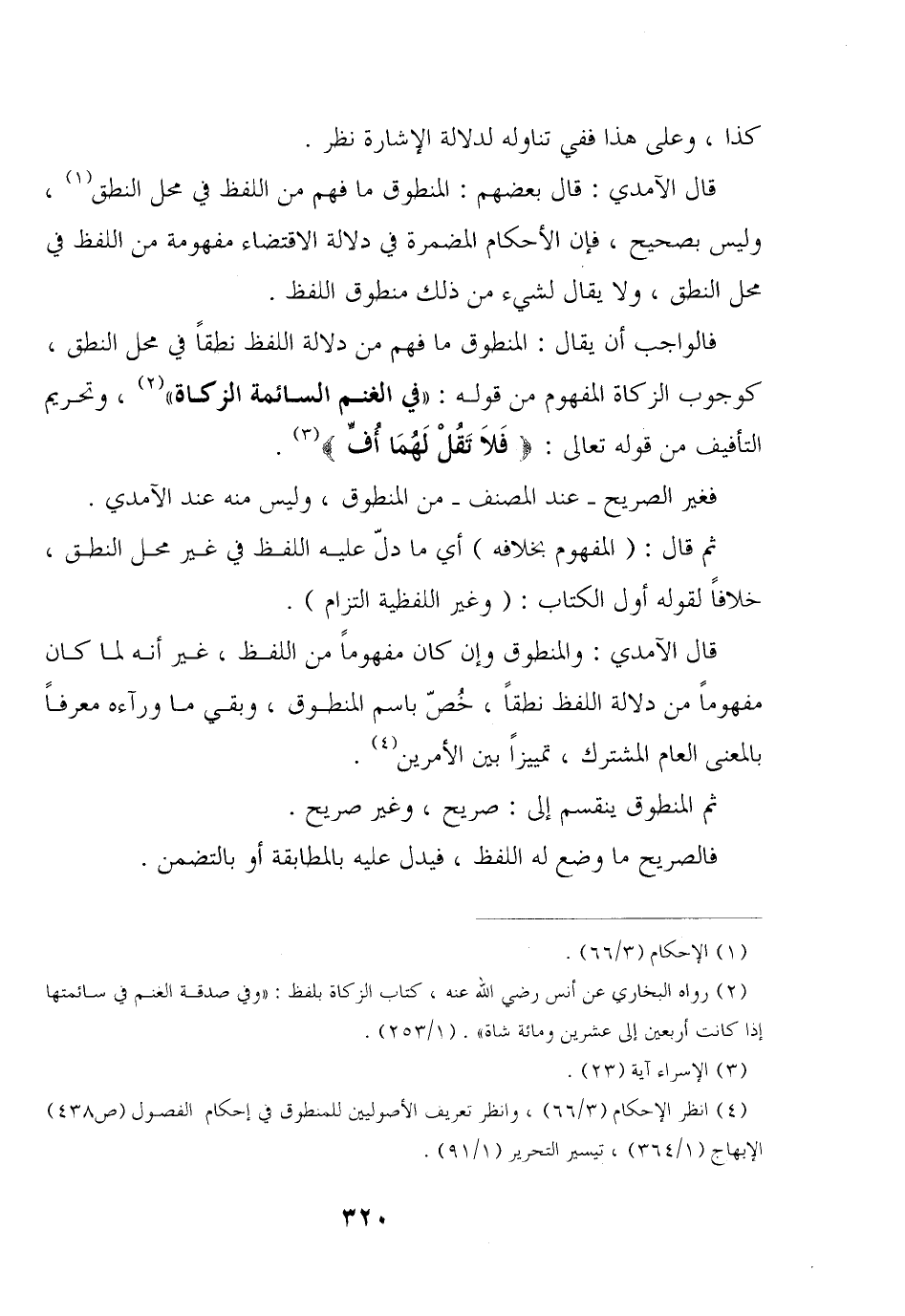 فالواجب أن يقال: المنطوق ما فهم من دلالة اللفظ نطقًا في محل النطق, كوجوب الزكاة المفهوم من قوله: «في الغنم السائمة الزكاة» , وتحريم التأفيف من قوله تعالى: {فلا تقل لهما أف}.
