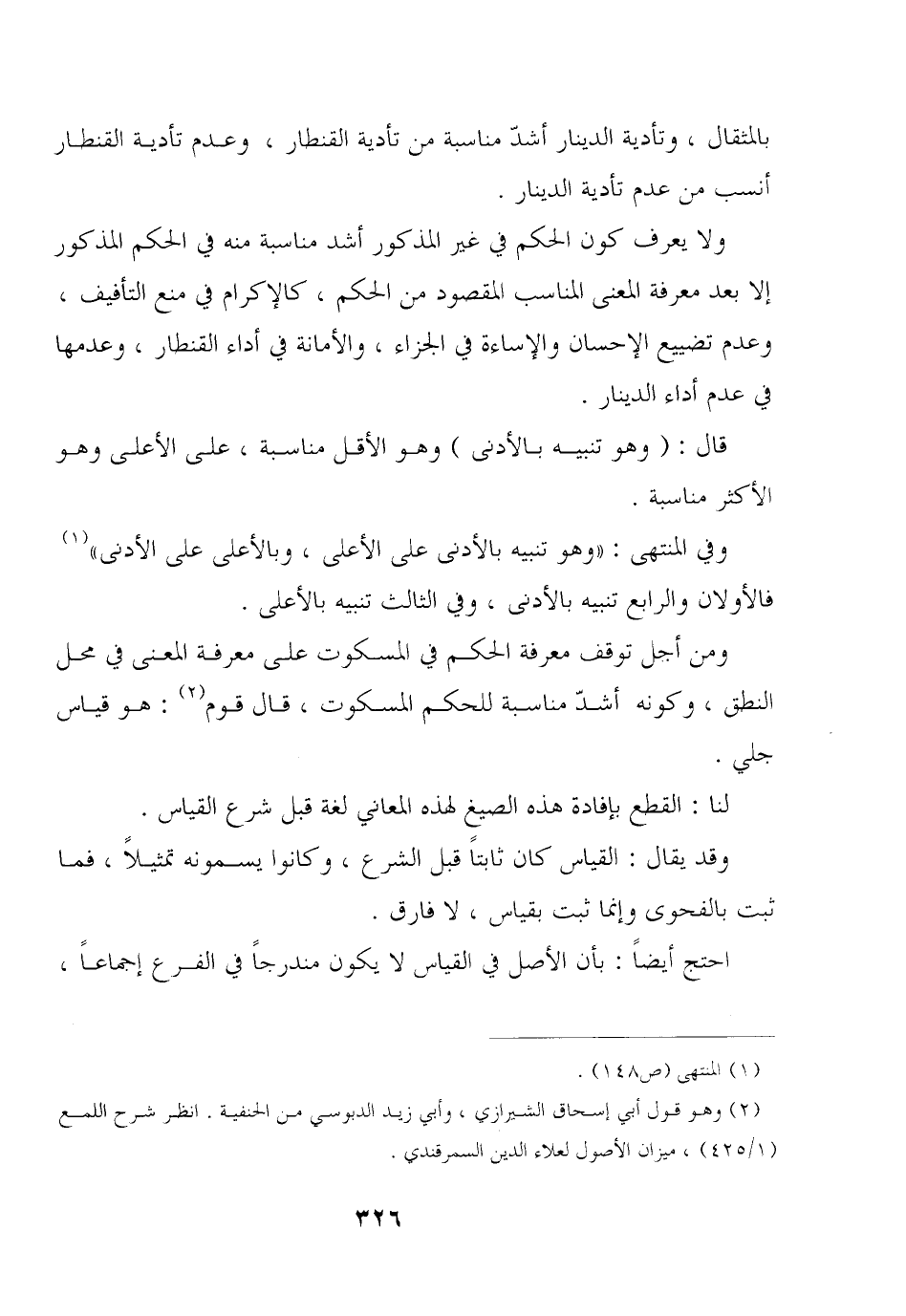 ومن أجل توقف معرفة الحكم في المسكوت على معرفة المعنى في محل النطق, وكونه أشدّ مناسبة للحكم المسكوت, قال قوم: هو قياس جلي.