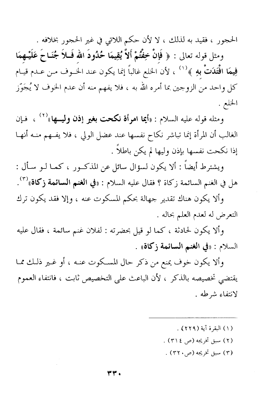 وألا يكون هناك تقدير جهالة بحكم المسكوت عنه, وإلا فقد يكون ترك التعرض له لعدم العلم بحاله.