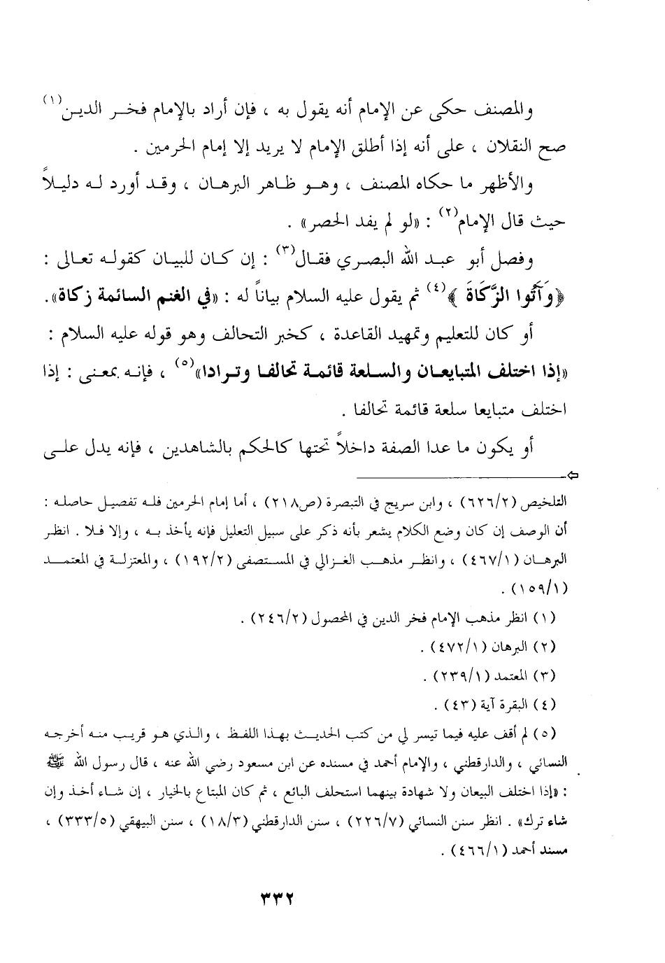 وفصل أبو عبد الله البصري فقال: إن كان للبيان كقوله تعالى: {وآتوا الزكاة} ثم يقول عليه السلام بيانًا له: «في الغنم السائمة زكاة». أو كان للتعليم وتمهيد القاعدة, كخبر التحالف وهو قوله عليه السلام: «إذا اختلف المتبايعان والسلعة قائمة تحالفا وترادا» , فإنه بمعنى: إذا اختلف متبايعا سلعة قائمة تحالفا.