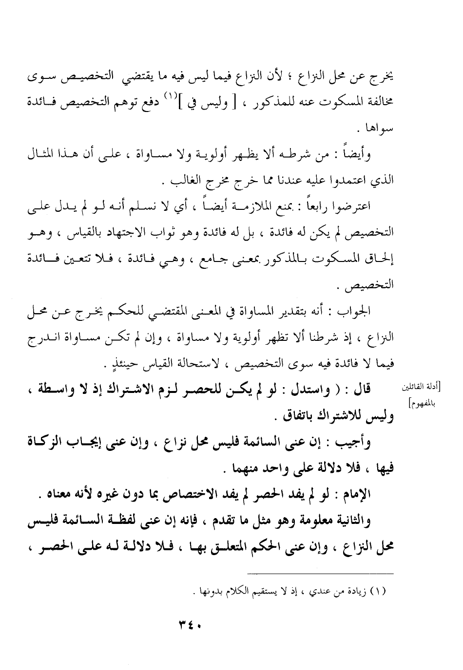 والثانية معلومة وهو مثل ما تقدم, فإنه إن عنى لفظة السائمة فليس محل النزاع, وإن عنى الحكم المتعلق بها, فلا دلالة له على الحصر,