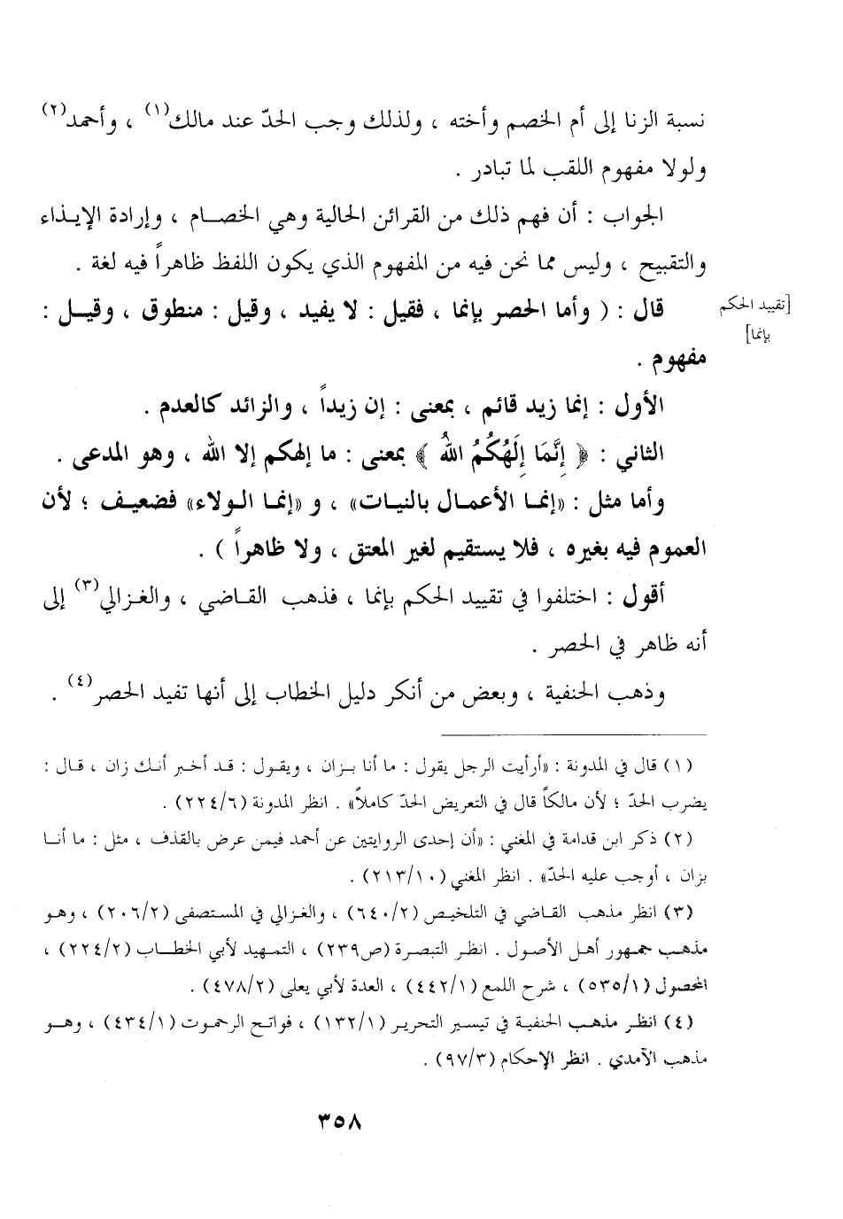 أقول: اختلفوا في تقييد الحكم بإنما, فذهب القاضي, والغزالي إلى أنه ظاهر في الحصر.